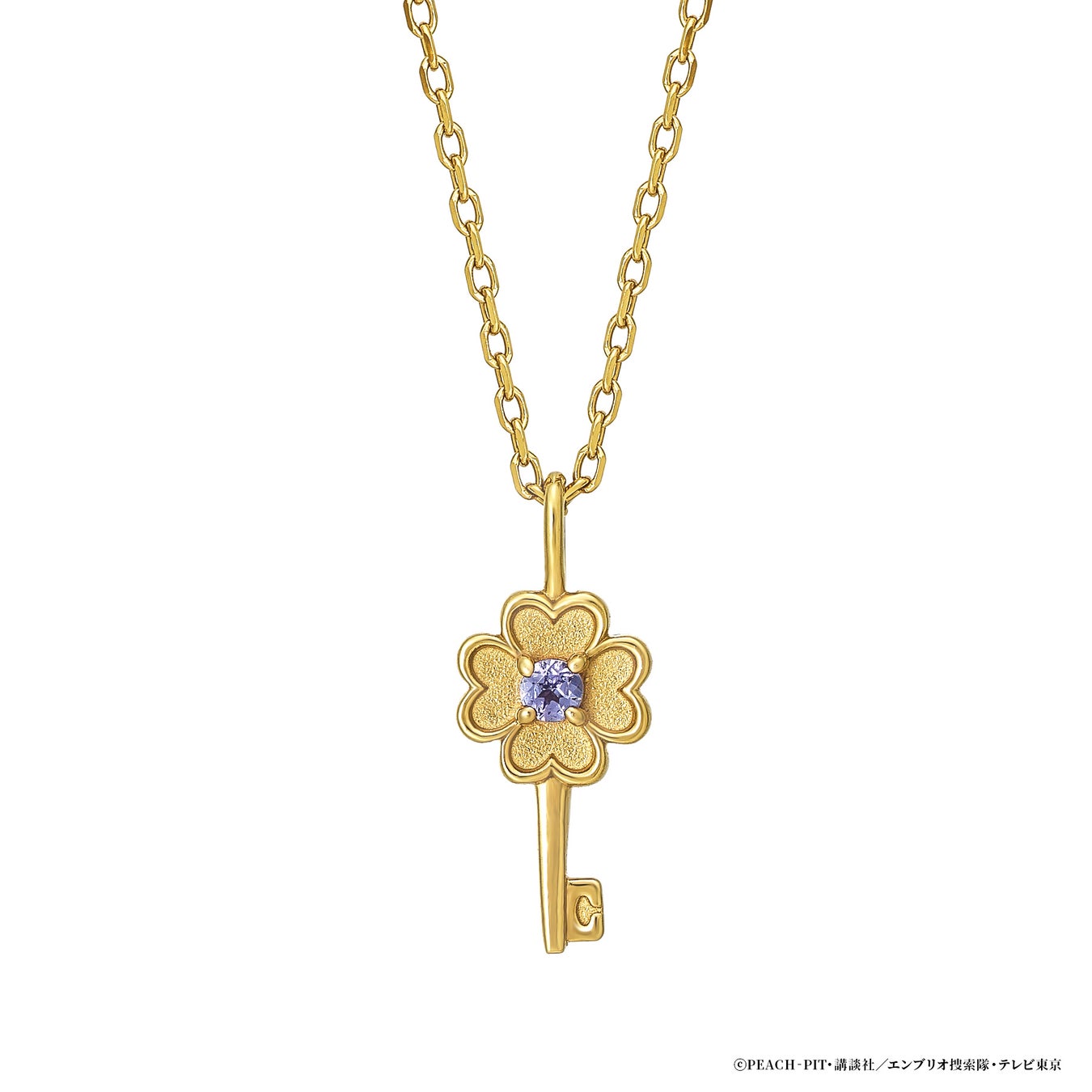クローバーの中央には月詠イクトの髪色をイメージしたタンザナイトをセッティング。程良いサイズ感でハンプティ・ロックと合わせても使いやすく、単体でシンプルな鍵モチーフのネックレスとしても可愛らしく使えるチャームです。