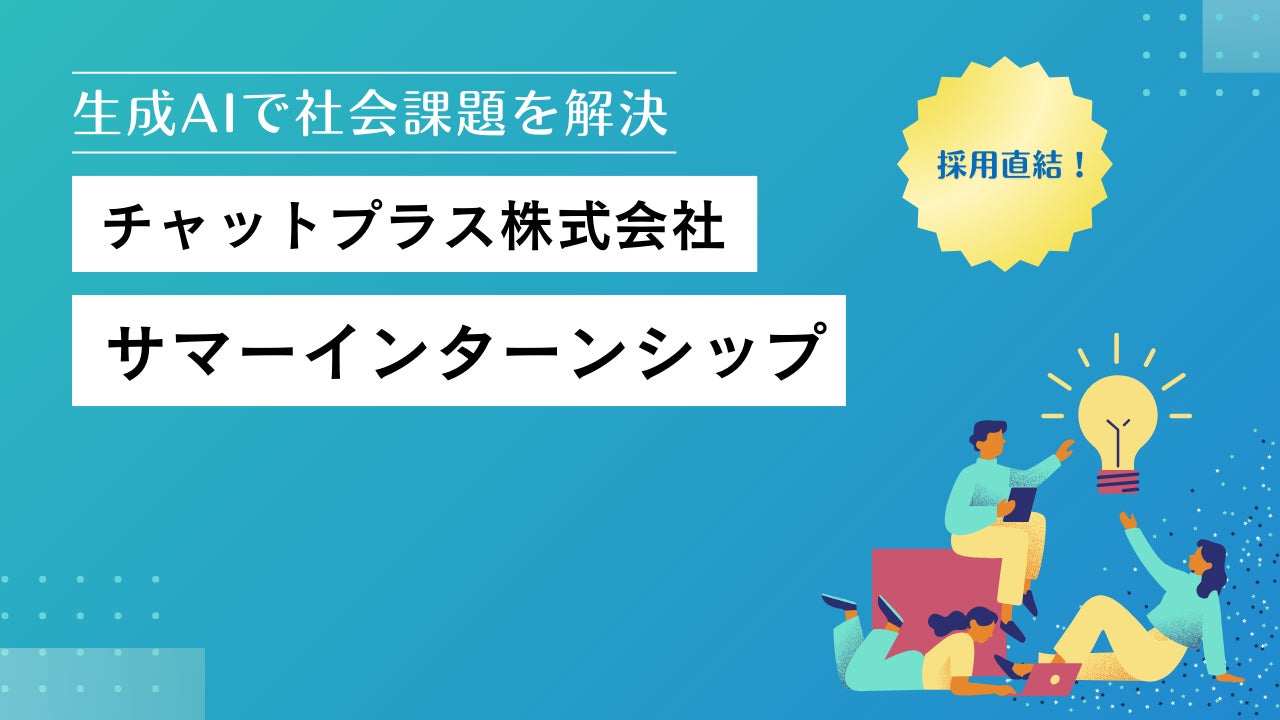 AIチャットボットサービス「ChatPlus(チャットプラス)」を提供するチャットプラス株式会社(本社:東京都千代田区、代表取締役:西田繭子)は2025年3月、2026年3月卒業予定の大学生・大学院生を対象に1Dayインターンシップを開催いたします。