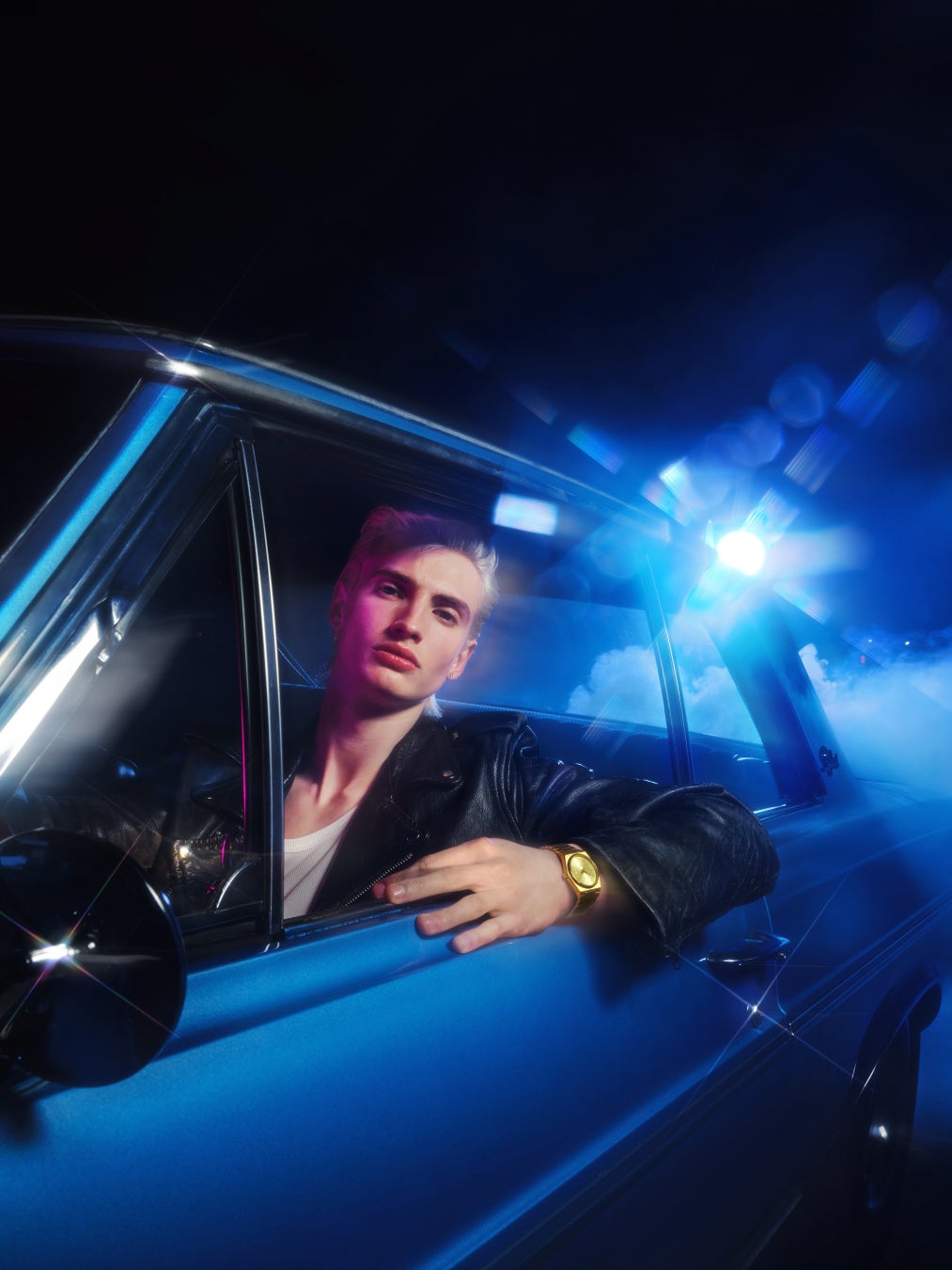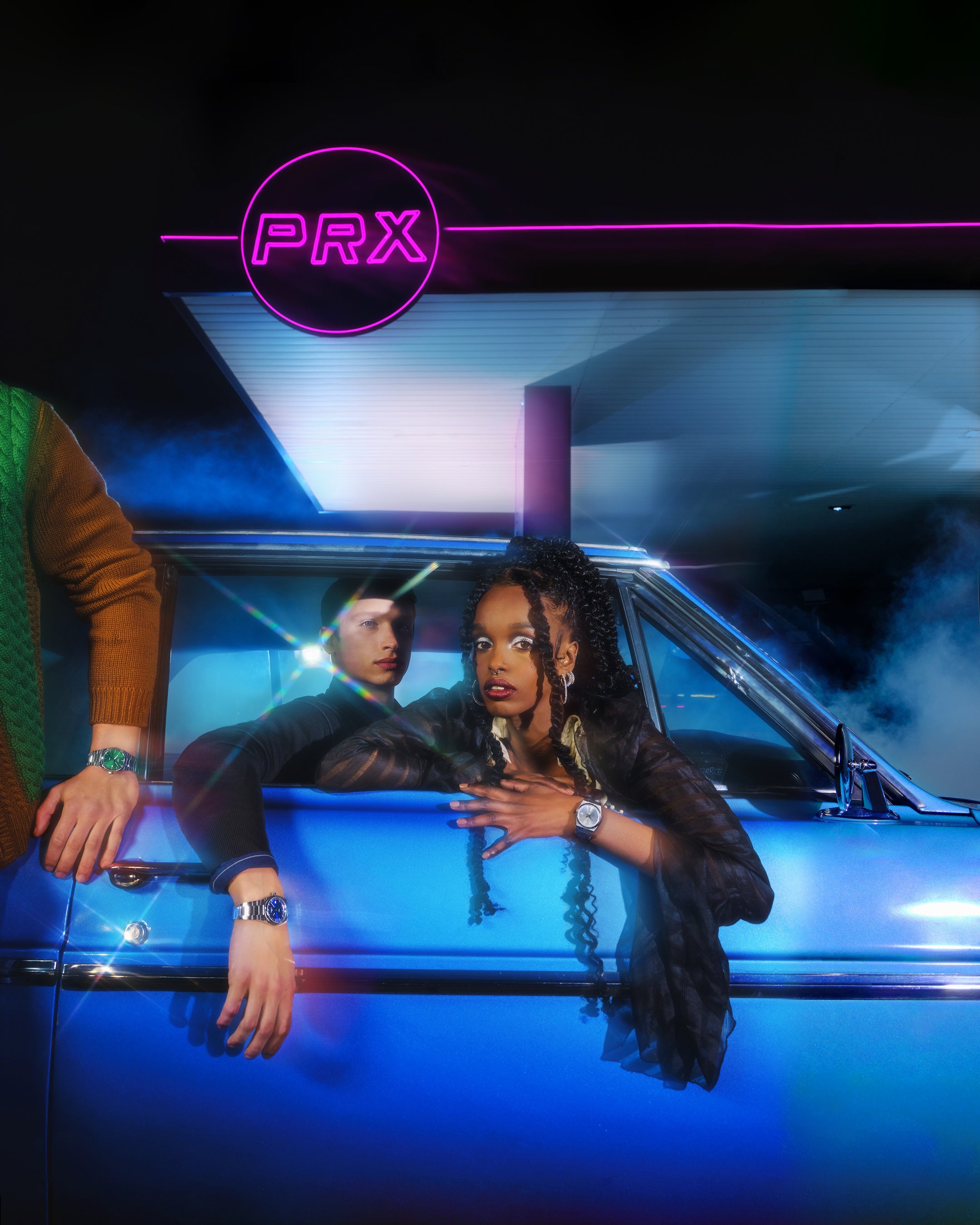 キャンペーンムービーでは、5種類のダイアルカラーのウォッチが彼らの腕で時を刻みます。世界に恐れることはありません。そして、映し出されるガソリンスタンドの名前は『PRX』 – ネオンピンクで輝いています。