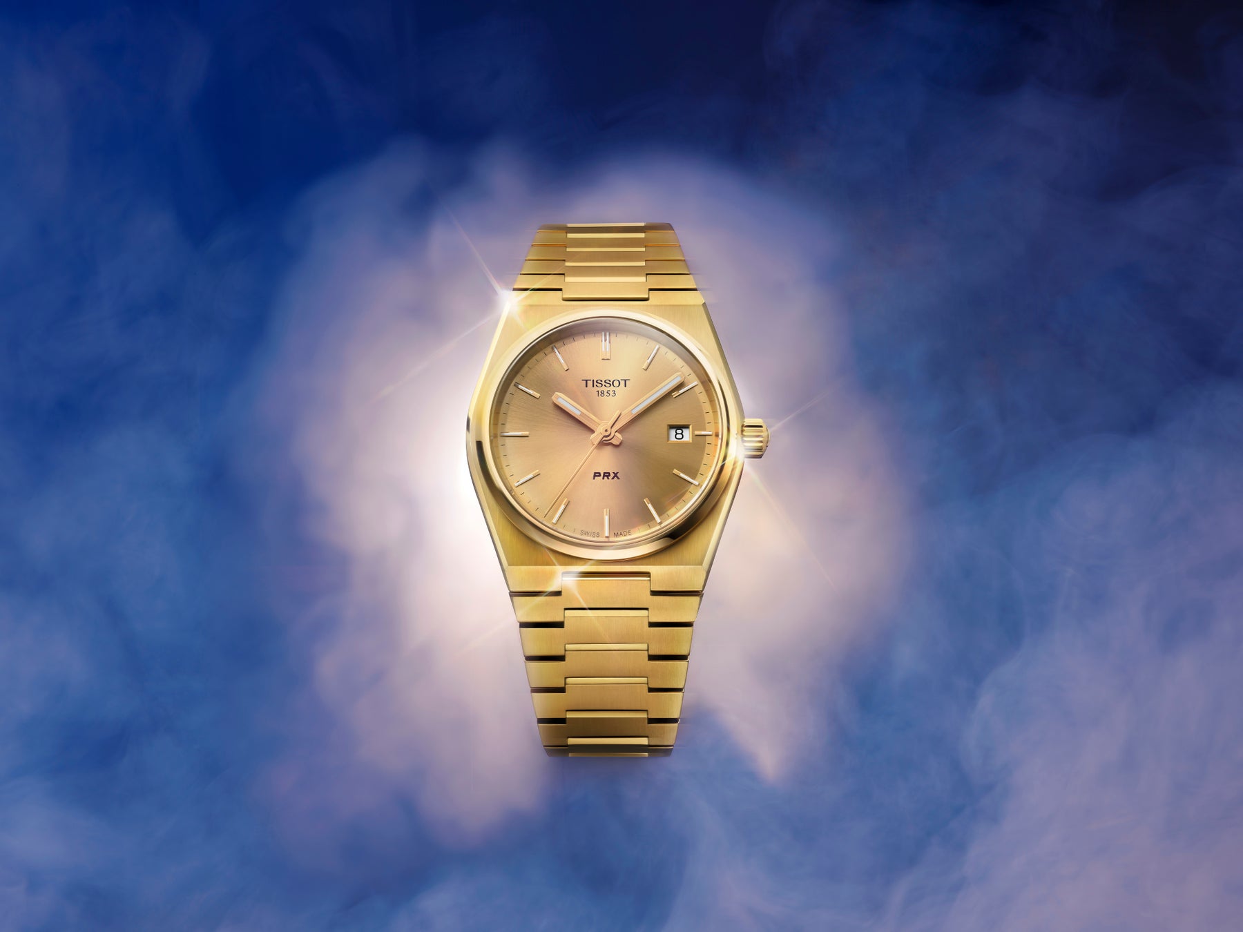 ユニセックスモデルのティソ PRX クォーツ 35mmに新色ゴールドが登場。5カラーの個性が際立つシネマティックなキャンペーンも展開