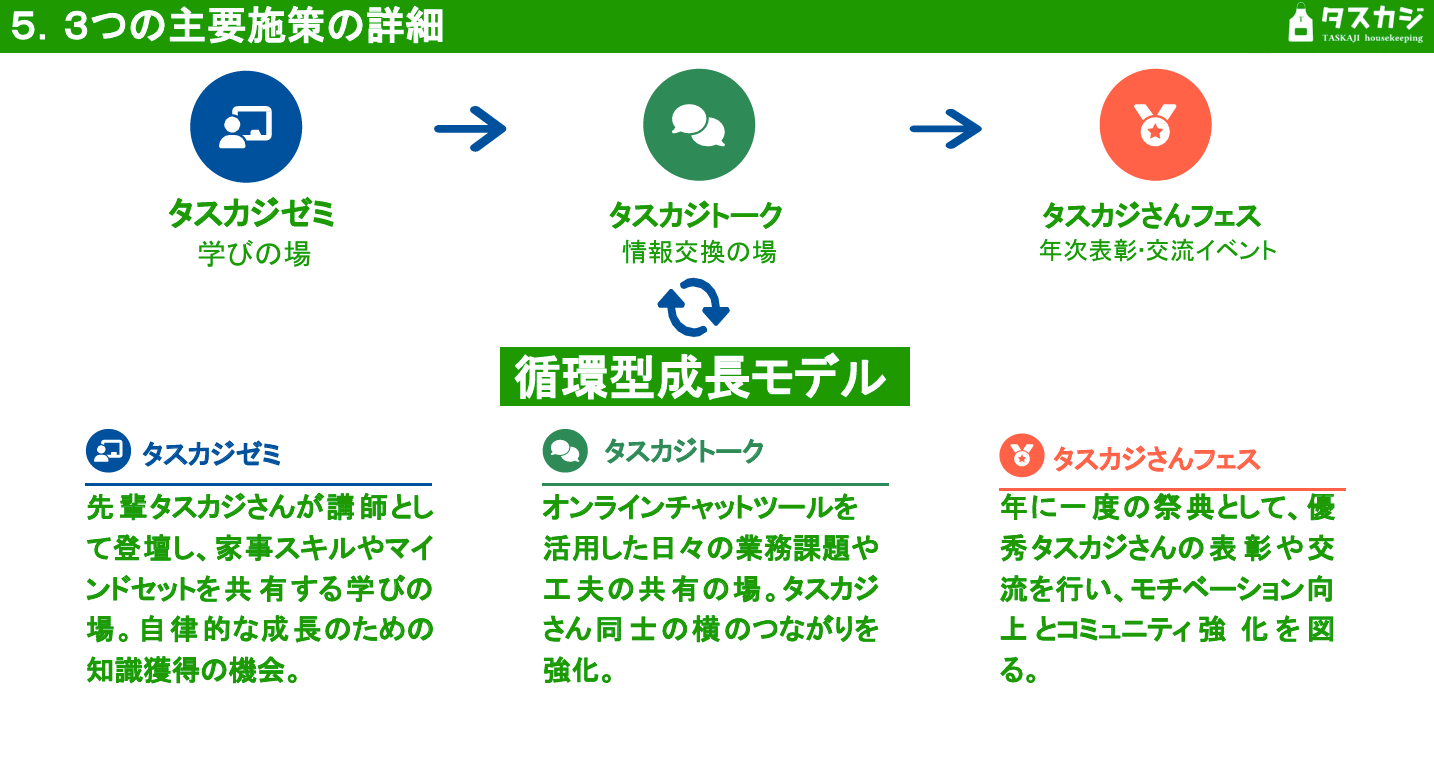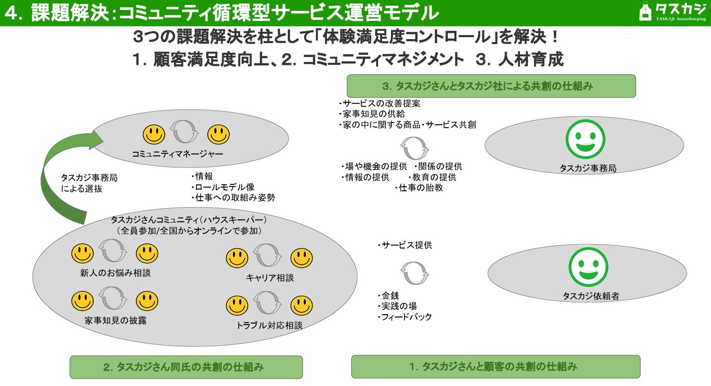 単なる顧客満足の向上に留まらず、サービス提供者の自立と成長を支える仕組みが“依頼者とタスカジさん・タスカジとの好循環”を生んでいると評しました。