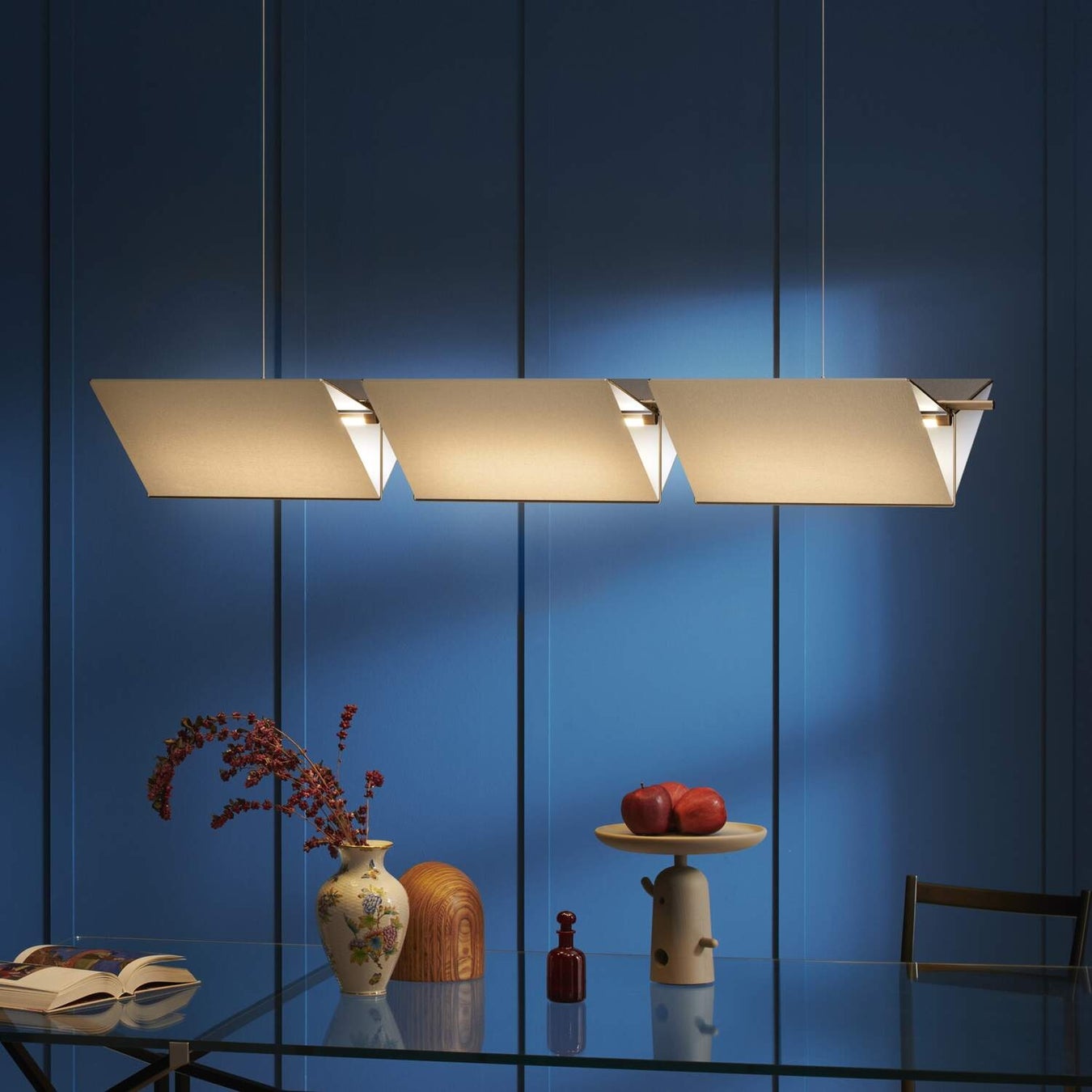 ペンダント、ウォール、フロア、テーブル用のモジュラー照明システムとして展開。2種類の長さの要素から成り、片方はもう一方の倍のサイズで構成されます。単独でも、また組み合わせても使用でき、繊細で優美な光の効果を放つ多様なインスタレーションやコンポジションを生み出すことが可能です。