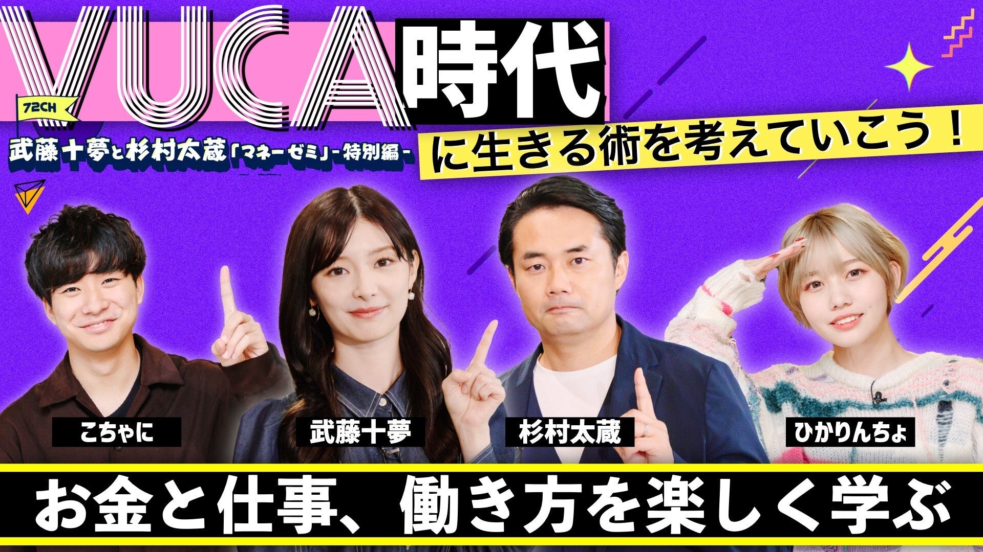 今回は、過去に『72channel』の「新時代のマネーリテラシー・教えて太蔵先生!」で、これからのマネー論についてわかりやすく語っていただいた元衆議院議員で投資家の杉村太蔵さんと、「武藤十夢のマネーゼミ」で同世代・若い世代に向けてお金の今と未来像を語っていただいたAKB48のメンバーでファイナンシャル・プランナー資格を持つアイドル兼女優の武藤十夢さんのお二人をゲストに迎えた特別編。Z総研×インヴァランスで行った共同調査の結果を元に、「VUCA時代に考えるべき生き方」について仕事・お金・SNSの3つの視点から、人気インフルエンサーのひかりんちょさんとこちゃにさん、現役東大生のリアルZ世代たちと熱いトークを繰り広げました。Z世代の皆さまが、これからの時代の働き方や必要になるお金の知識などを大学のゼミのように一緒に学べるような内容となっておりますので、是非ご覧ください!