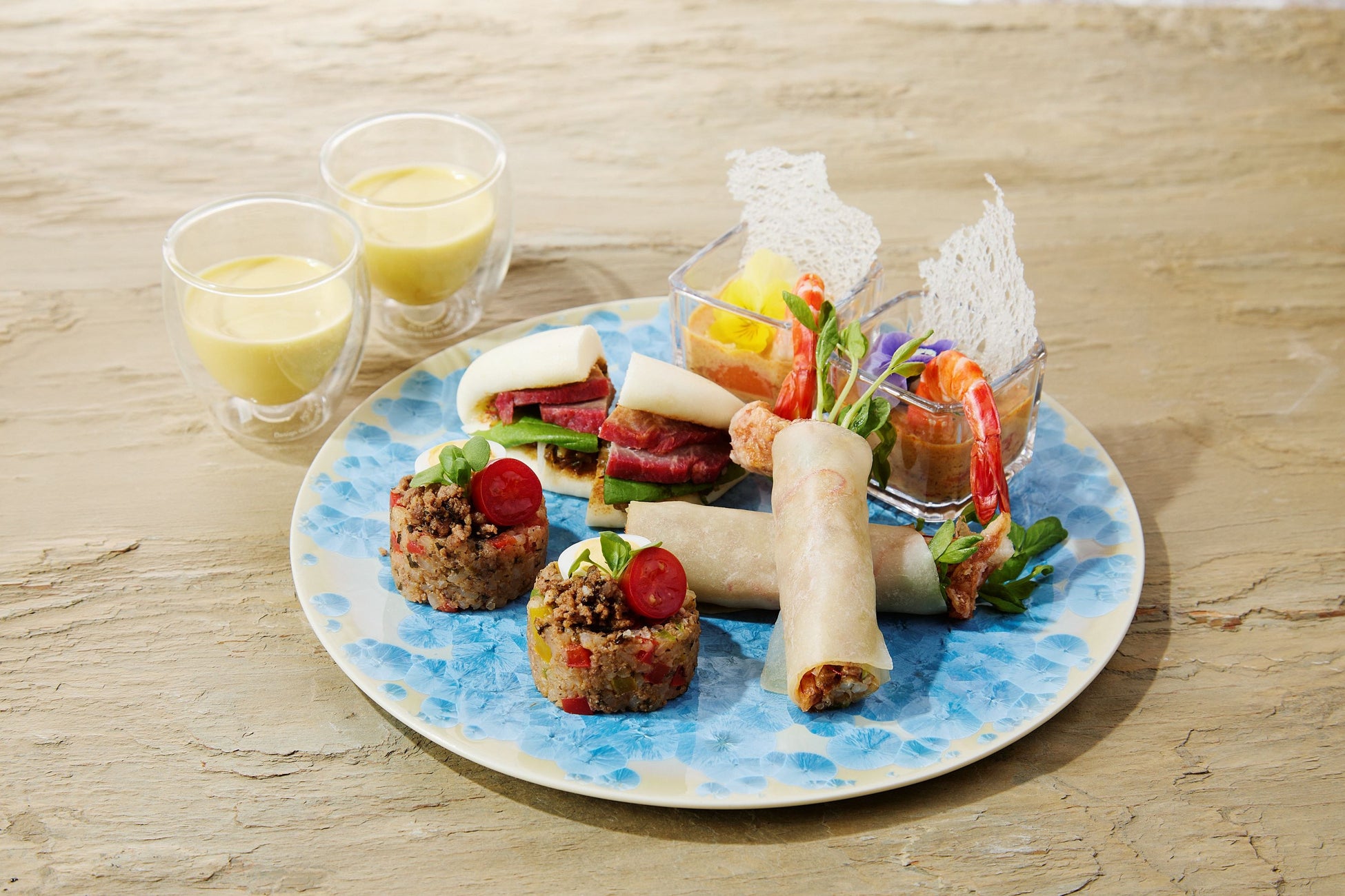 また、6月1日(日)からは、バータイムにザ・ロビーラウンジでお楽しみいただける「アジアンタパスプラン」も販売いたします。ナンプラーを効かせたドレッシングと爽やかなライムを絞って食べるベトナム風海鮮サラダを前菜に、スイートチリソースにディップする春巻き、サンバルソースやカレー粉でマリネした焼き鳥や台湾風に八角や花椒で味付けしたビーフの煮込みなど、アジア独特の調理法や代表的な調味料でメリハリのあるお食事が並びます。締めの麺類は、ネギで香りをつけた香味油や魚醤を中華麺に絡めた、マレーシアの汁なし混ぜそばとして現地で親しまれている「コロミー」。シンプルな味付けに、フライドオニオンの香ばしい風味が華を添え、大きくプリプリな海老や優しい甘さで全体をまとめる薄焼き卵もそれぞれの役割を果たし、小鉢ながらも満足感を提供します。最後は、丁寧に裏ごしされたマンゴーのエキゾチックな甘さを味わえる「マンゴープリン」。その上にはココナッツミルクとタピオカが注がれていて、別々に食べても、一緒に合わせても、アジアを感じられる南国のデザートで、タパスタイムを優雅に締めくくります。