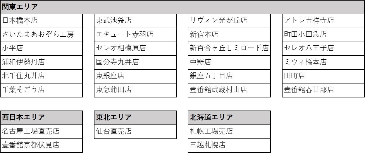 対象店舗:銀座店、二子玉川店、横浜店、名古屋店、大阪店