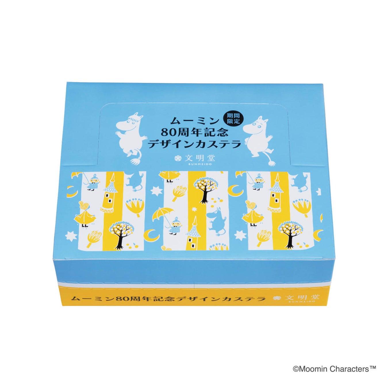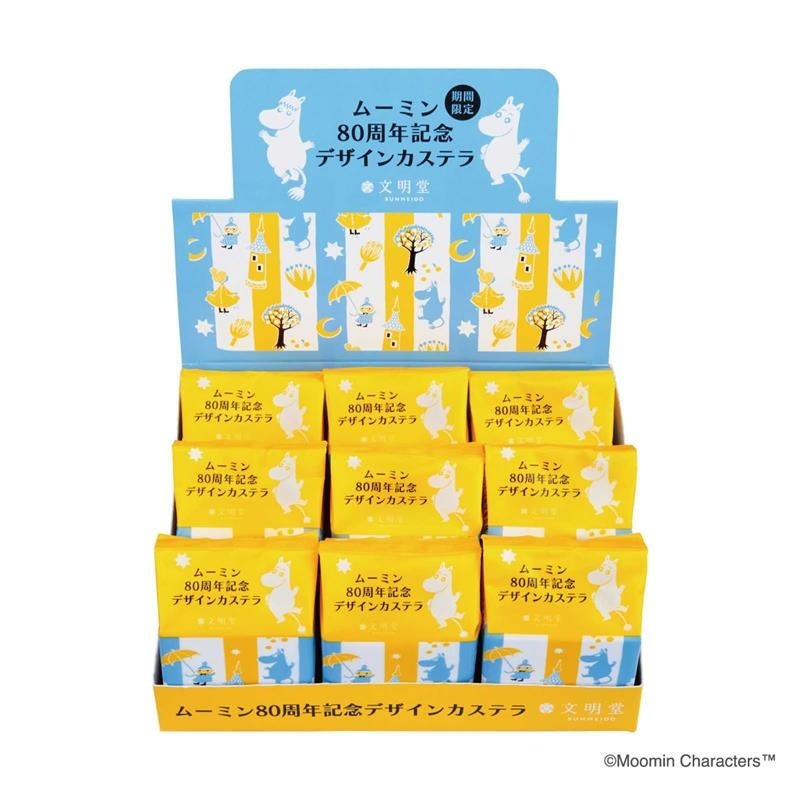 これを記念して、80周年限定イラストを使用した、「ムーミン 80周年記念デザインカステラ」を文明堂から発売。