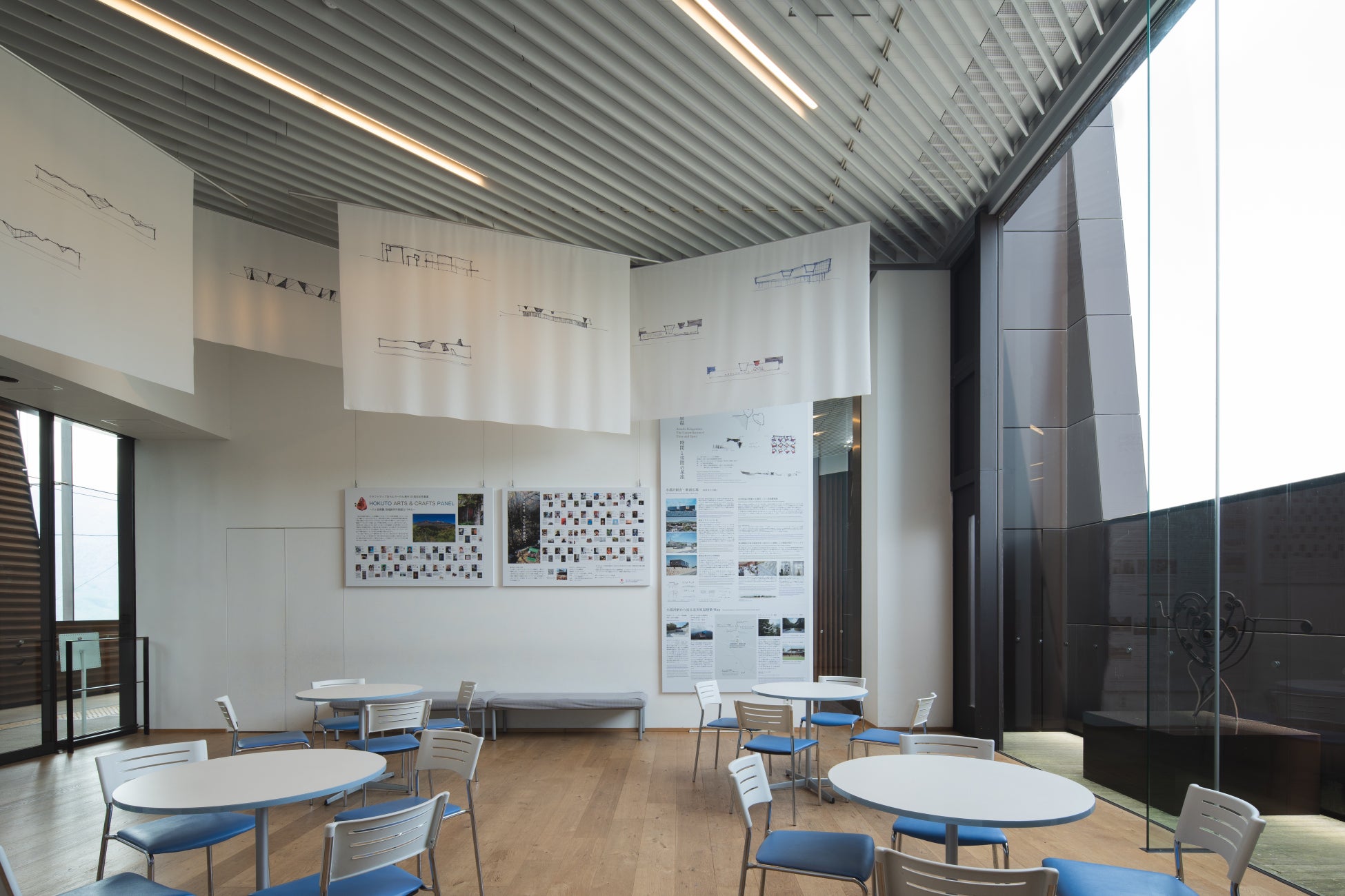 ホテルキーフォレスト北杜では、小淵沢と関連するプロジェクトの模型や資料、写真家による北川原建築やコンセプトモデルをとらえた作品を展示。また、ホテルロビーと中村ウィスキーサルーンでは北川原氏が創作のインスピレーションを得ている音楽や香り、味といった日常の身体感覚を体験できる企画を行います。JR小淵沢駅では、特徴的な窓で八ヶ岳の山岳景観を効果的に見せている「交流スペース」を会場に、北杜市に点在する北川原建築の魅力を紹介する展示を開催します。