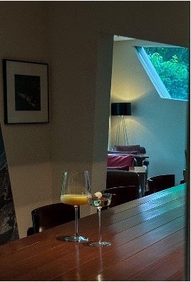 北川原氏ゆかりの「なかひら農場」(長野県)のりんごジュースに、国産ボタニカルを使用したノンアルコールジンを合わせたモクテル。