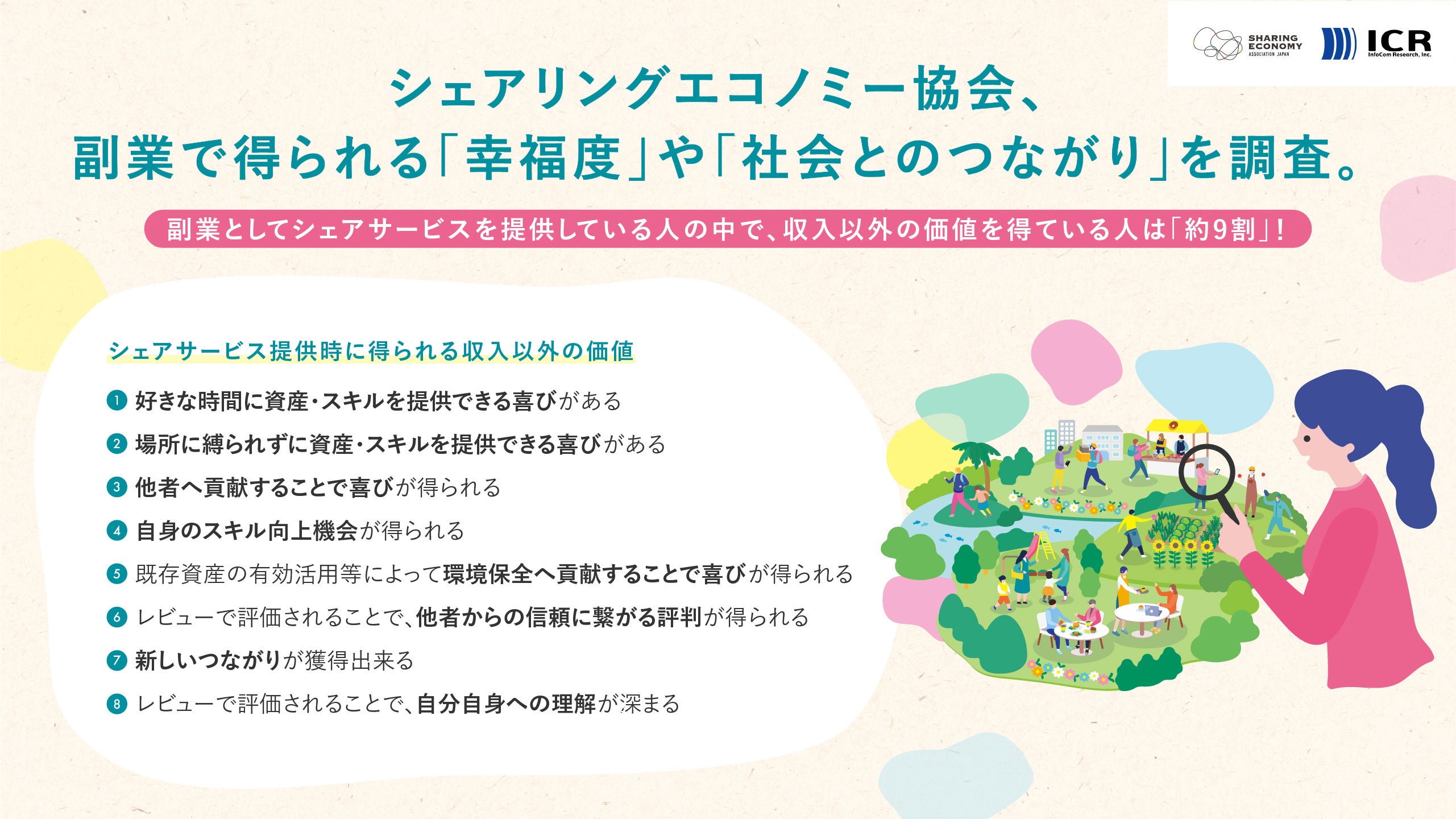 “収入以外の価値” を感じている人は「約9割」。シェアリングエコノミー協会、副業における『幸福度』や『社会とのつながり』に関する調査結果を発表。