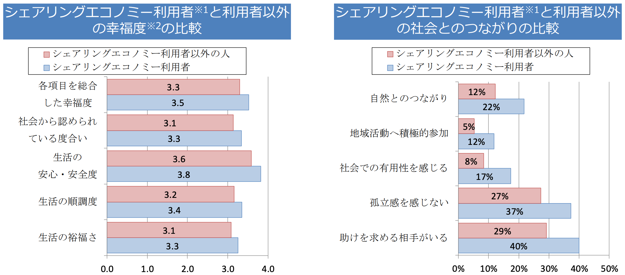 - シェアリングエコノミー利用者の「幸福度」と「社会とのつながり」