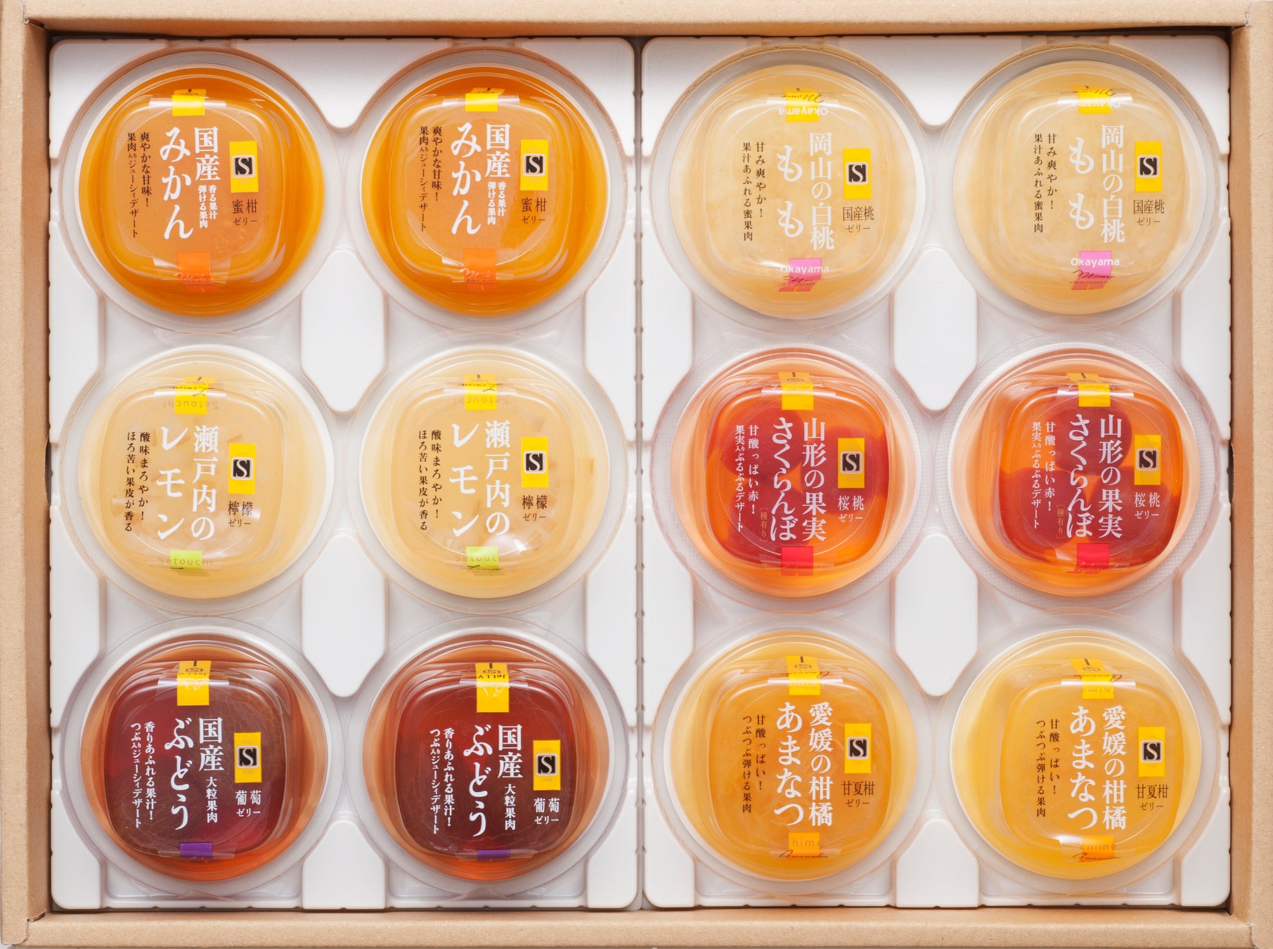ギフト内容 ゼリー((みかん・レモン・あまなつ)各68g×各2、(もも・さくらんぼ・ぶどう)各70g×各2)