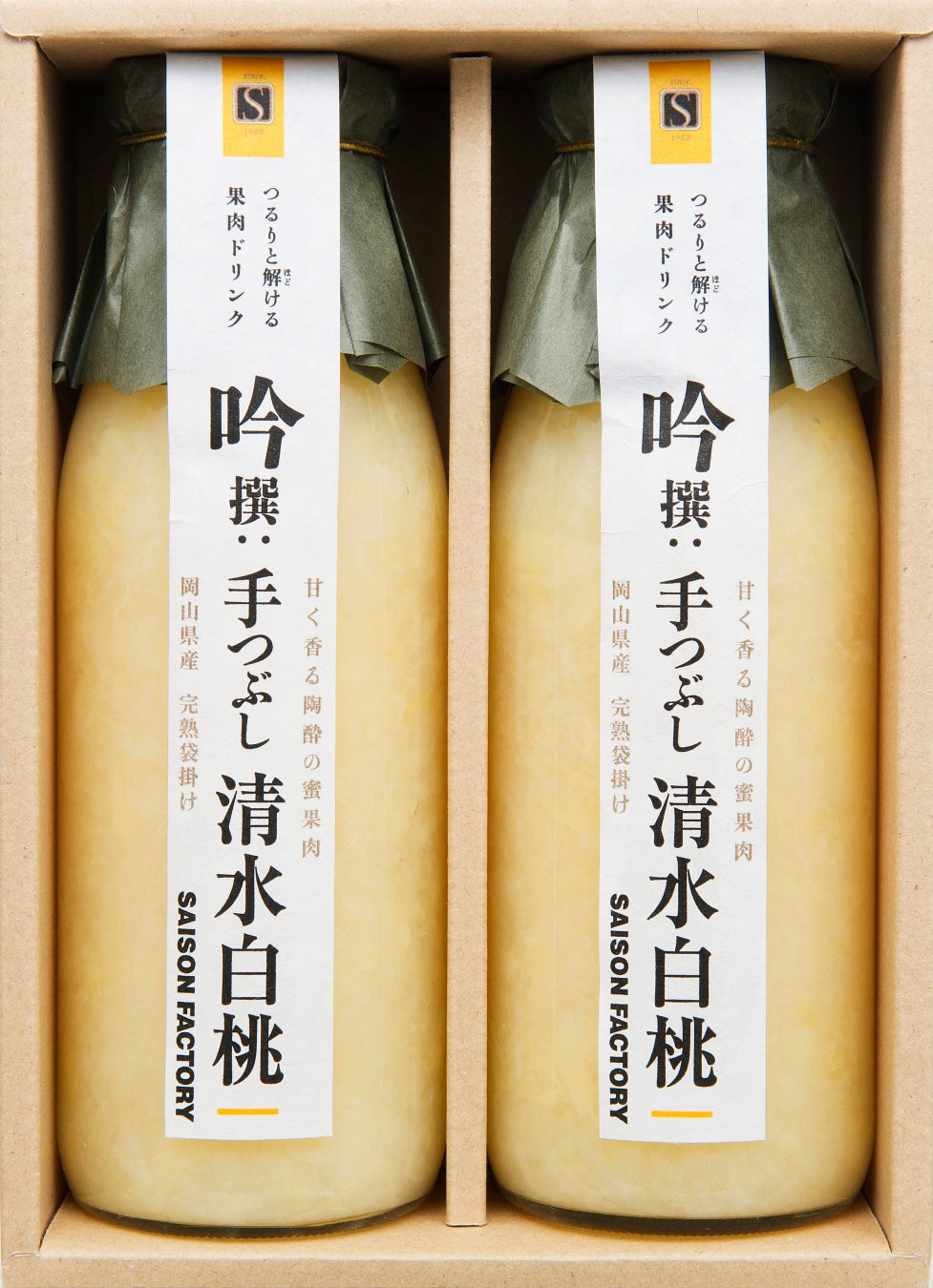ギフト説明 桃は岡山県産清水白桃を100%使用したドリンクのセット。職人が桃の硬さを見極めながら丁寧に手つぶしし、清水白桃の果肉感を堪能できるドリンクに仕上げました。桃をそのまま食べているようなジューシーさと芳醇な香り、果肉感は季節限定の味わい。ひんやりと冷やしてお召し上がりください。
