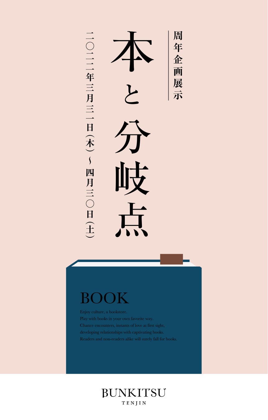 1周年を迎える〈文喫 福岡天神〉は、これからも本と人のかけがえのない出会いがある場所であり続けたいという思いを込めて、企画展示「本と分岐点」を開催します。