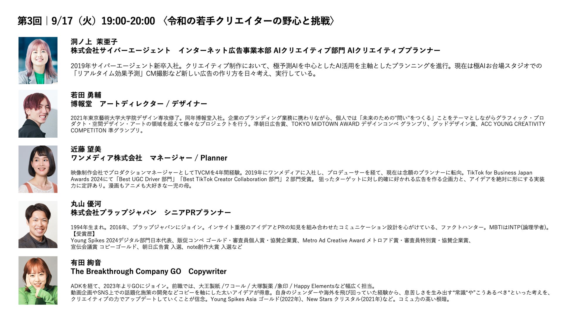 第3回|9/17(火)19:00-20:00 <令和の若手クリエイターの野心と挑戦>