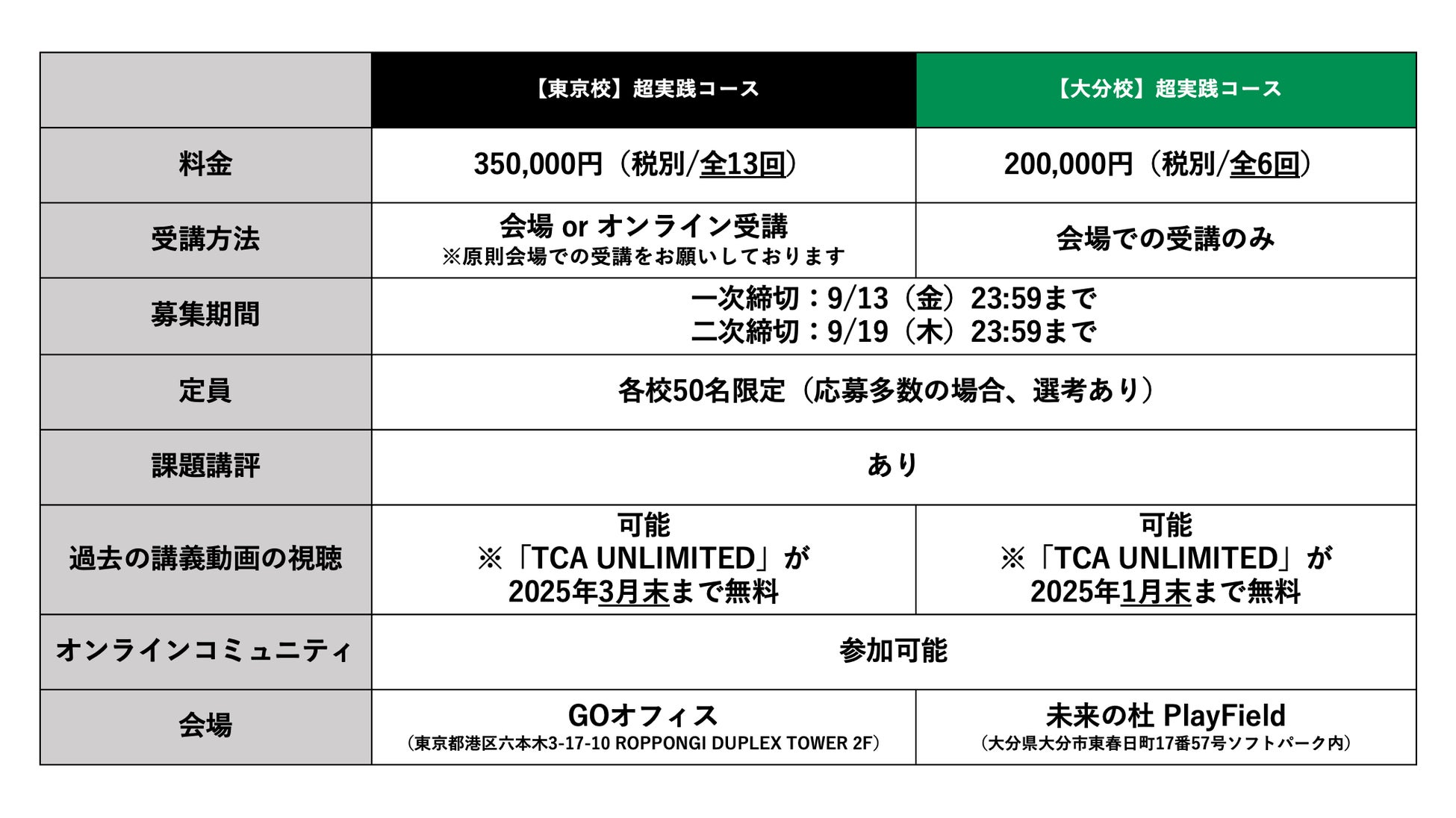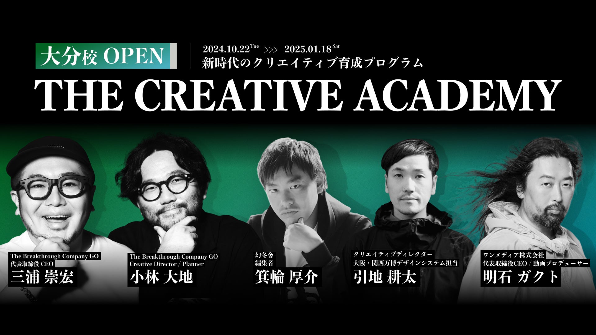 この度「超実践コース」の教育体験を地方都市にお住まいの方にも提供すべく、地方での初の試みとして「THE CREATIVE ACADEMY 大分校」も同時開講いたします。