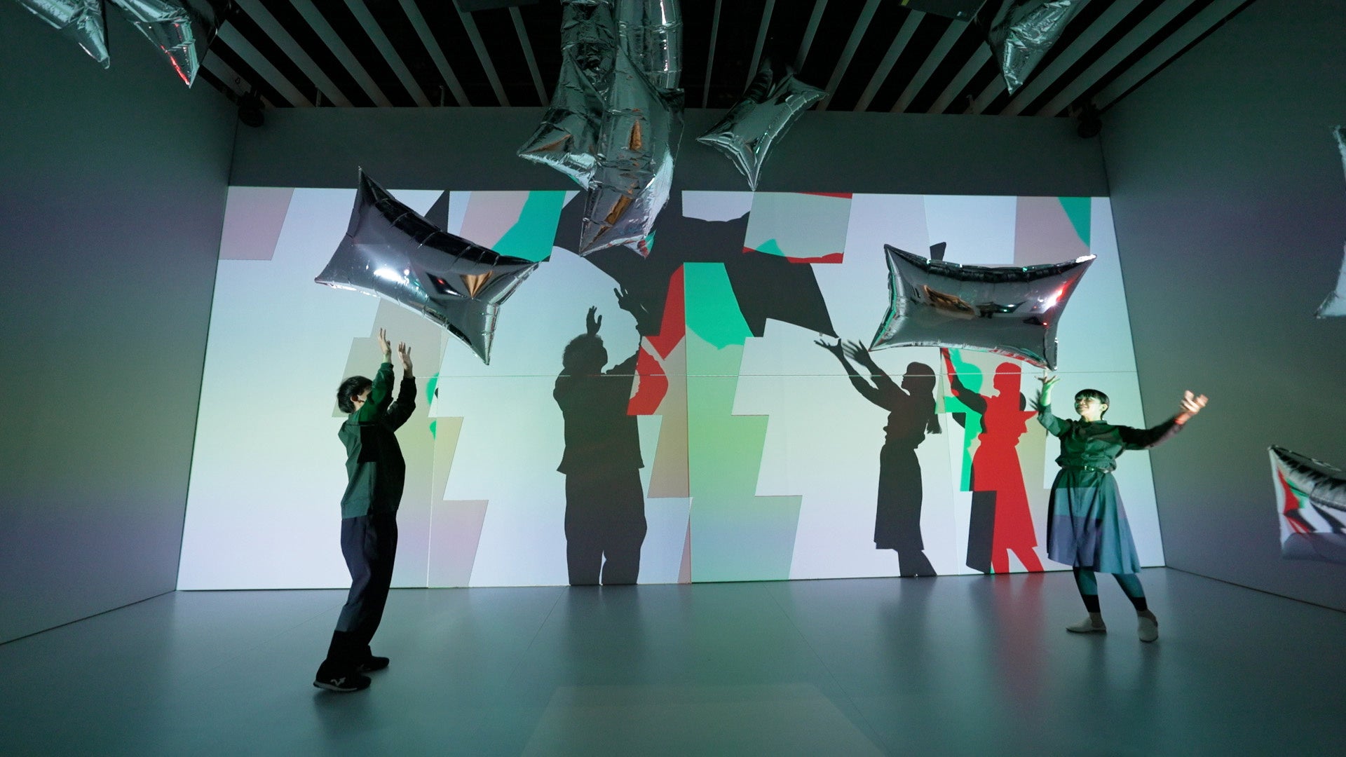 我々人間にとって、小さなころから最も身近な存在でもある影。我々の身体が光に照らされるとき、その姿・形を表した影も常に存在します。しかし、その光によって生み出された影の形が変容したら、影に色が付いたら、私達は自分の身体をどう感じるのでしょうか?本作品で用いられるマルチプロジェクションシステムは、投射される映像の形・色・時間などが高度に制御された複数台のプロジェクターから構成されています。