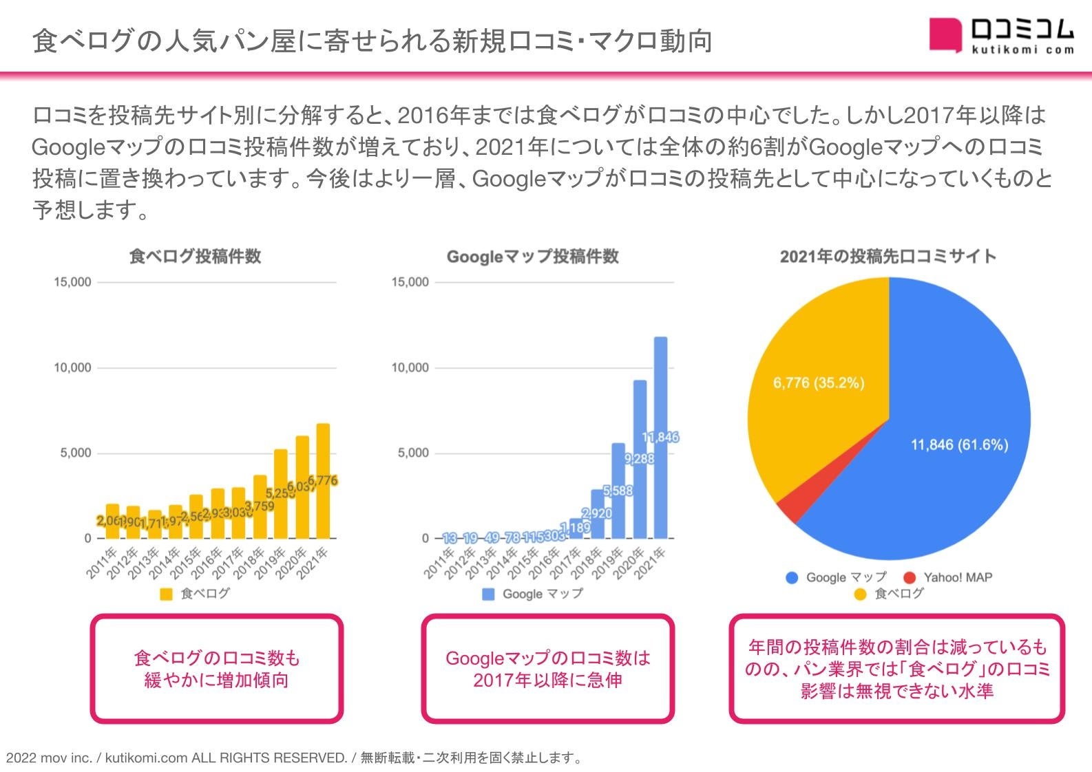 調査対象の76店舗では、2011年以降の調査期間において、新規口コミの件数は2021年まで連続して増加を続けています。