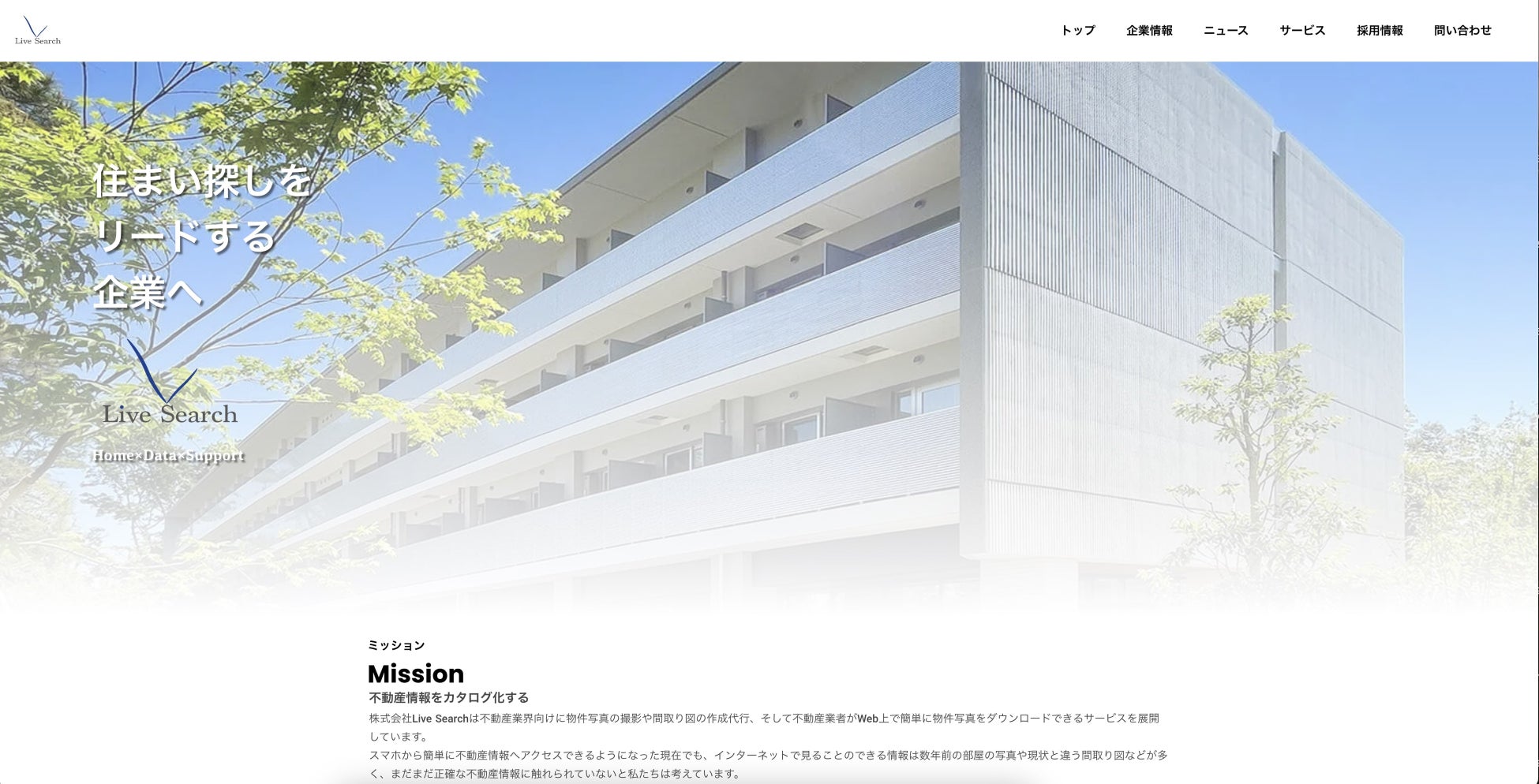 リブ・サーチは設立以来、不動産会社様の物件写真や間取り図の作成を通したプラットフォームとして、サービスを提供してまいりました。今回のコーポレートサイトリニューアルは、リブ・サーチのビジョンである「住まい探しをリードする企業へ」とミッションである「不動産情報をカタログ化する」をより強固なものとし、不動産会社様により良いサービスを提供することを目的としています。