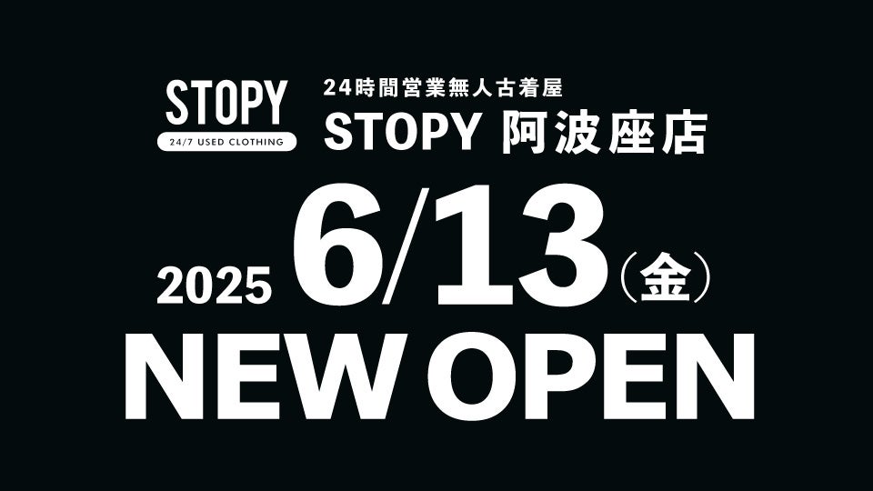 株式会社JAM TRADING(大阪府大阪市/代表取締役 福嶋 政憲)が運営する無人古着屋「STOPY(ストッピー)」は、2025年6月13日(金)12時に「STOPY 阿波座店」をオープンいたします。