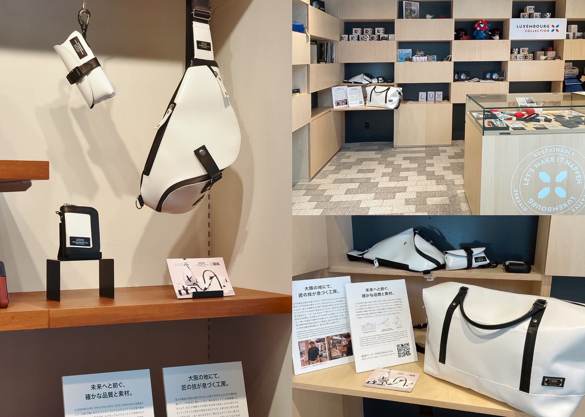 万博閉幕後には、回収・製造・販売を通じて二酸化炭素がどの程度削減できたかを定量的に分析する事を計画しています。環境負荷の数値化により、循環型デザインの実効性を明らかにします。製品ラインナップ(ボストンバッグ Mサイズ、ワンショルダーバッグ Spiral、グラスケース、ミニウォレット)と予約方法は、初回発表時と変更ありません。引き続きルクセンブルクパビリオン内およびSEAL表参道本店にて製品展示を行い、オンラインでの予約を受け付けております。