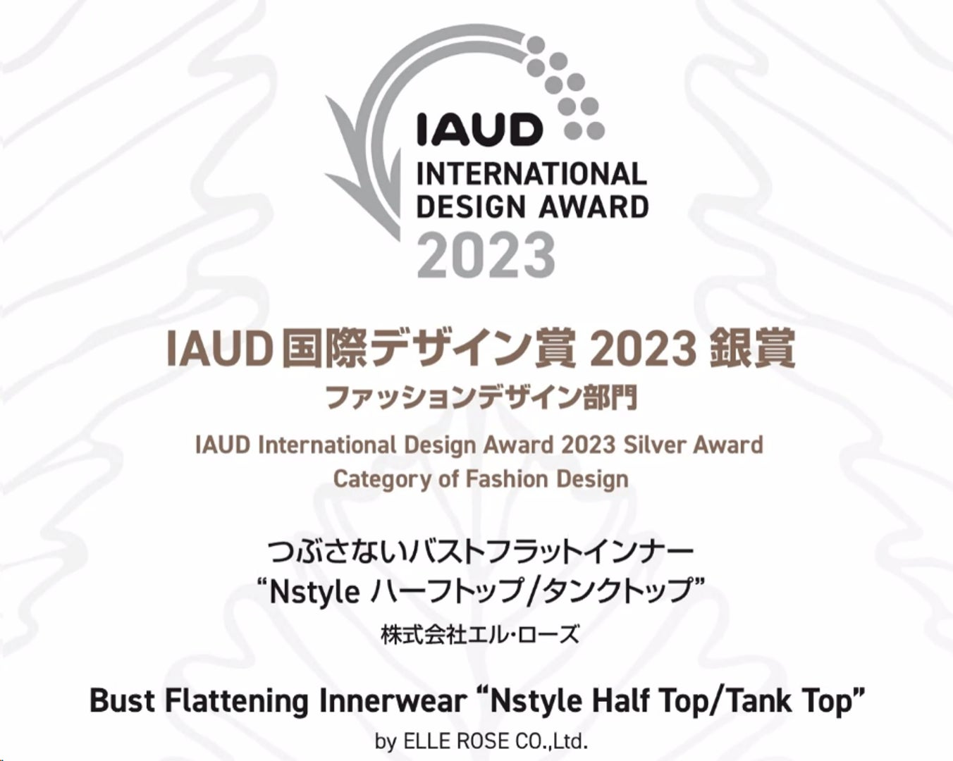 株式会社エル・ローズ(本社:福井県福井市)が運営する“つぶさない”バストフラットインナー「Nstyle(エヌスタイル)」のハーフトップ/タンクトップが、一般財団法人 国際ユニヴァーサルデザイン協議会(IAUD)が主催する「IAUD国際デザイン賞2023」において、ファッションデザイン部門の銀賞を受賞しました。