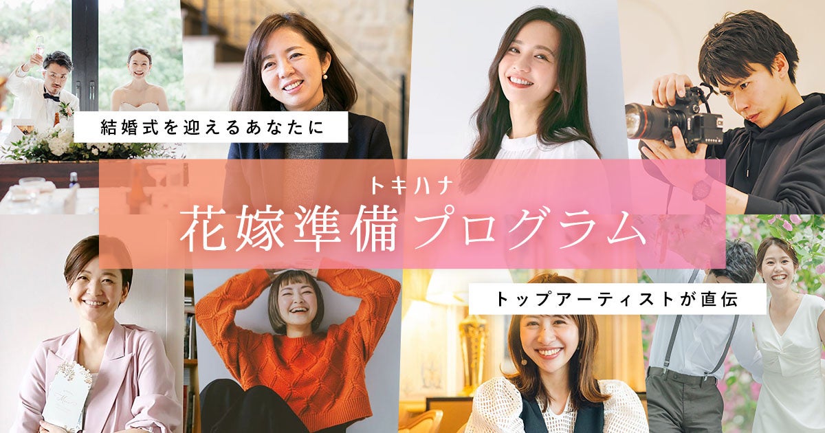 この期間も自分が理想とする結婚式の準備が楽しく進められるように、身体美容や前撮り、DIYやドレス選びなど各分野を代表するトップアーティスト直伝の特別な体験やワークショップに参加できるスペシャルなプログラムをトキハナメイトに向けて用意しました。