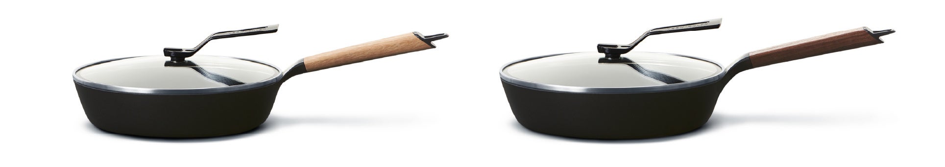 ハンドルの素材は、手になじむウッドハンドル(オーク/ウォールナット)、オーブンでも使えるメタルハンドルからお選びいただけます。別売りでステンレス製の専用リッドをご用意しております。
