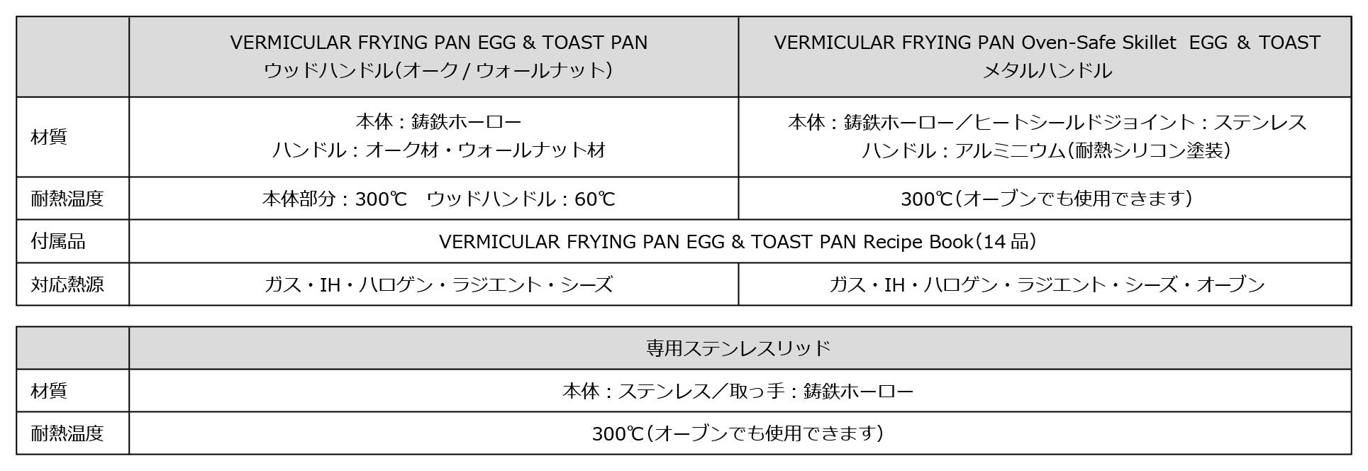 「革新的な調理性能」・「女性でも片手で扱える使いやすさ」・「生涯をともにできるサステナビリティ」というバーミキュラ フライパンの特長はそのまま受け継ぎながら、バーミキュラ ファンからの熱烈なリクエストを受け、玉子焼き器でありながら、人生最高のトーストを味わえる「EGG & TOAST PAN」を新たに開発しました。