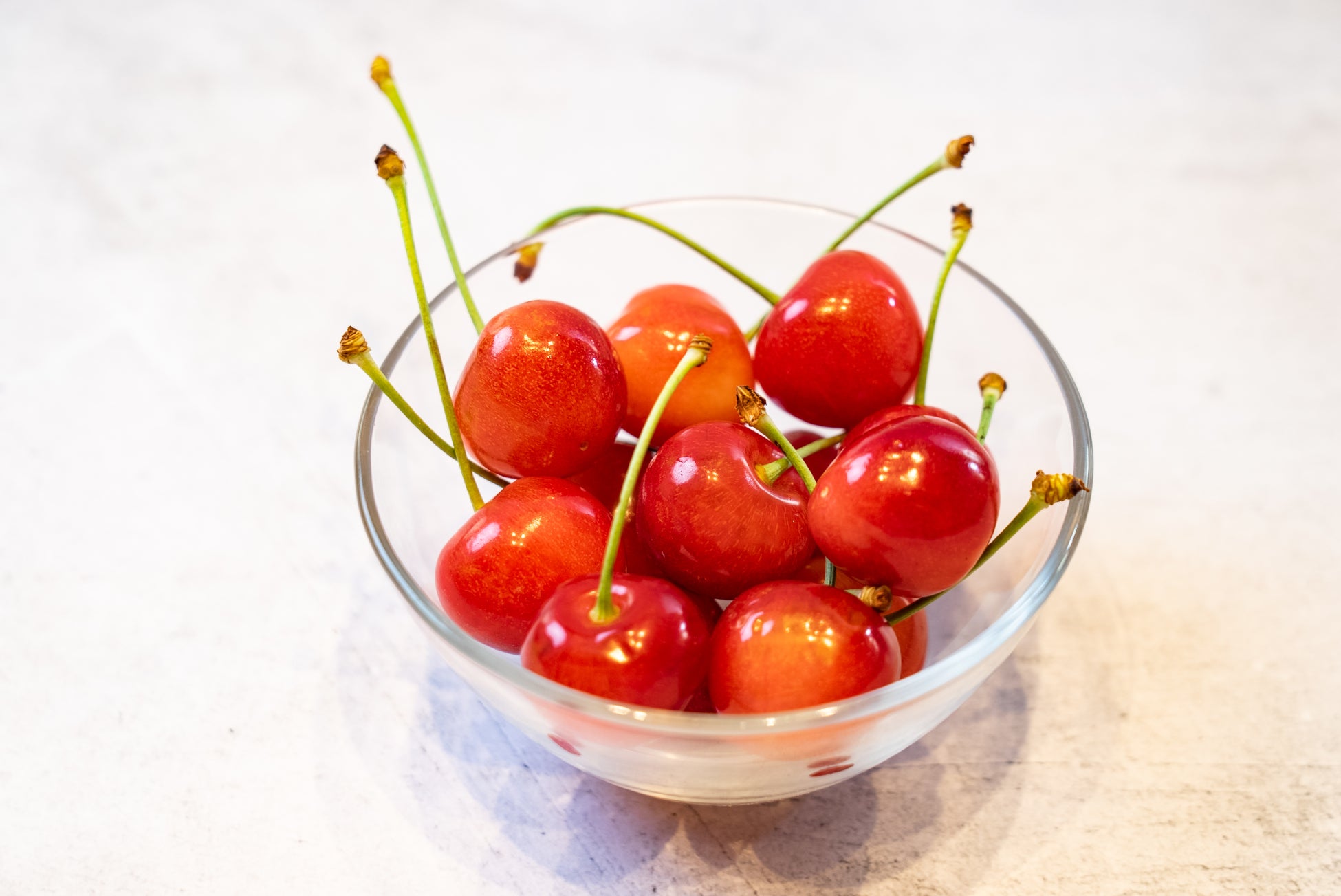 初夏に食べ頃を迎えるさくらんぼは、今がまさに旬。そして食べられる時期がとても短く限られています。さくらんぼと言えば、チェリーに比べると小ぶりなイメージですが、色づきもよく、ウットリしてしまう美しい鮮紅色。HUGEのバイヤーがその時期に美味しいものを選りすぐって買い付けをし、山梨や山形など様々な産地のものを時期に合わせて使用しています。