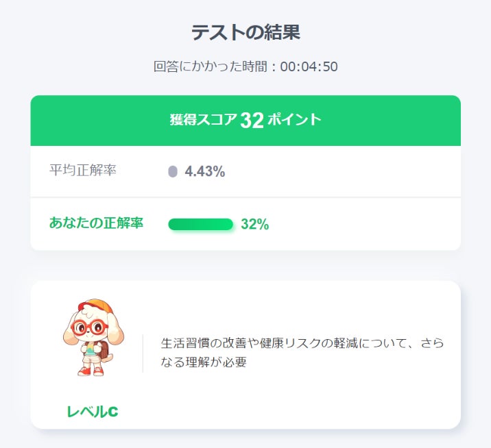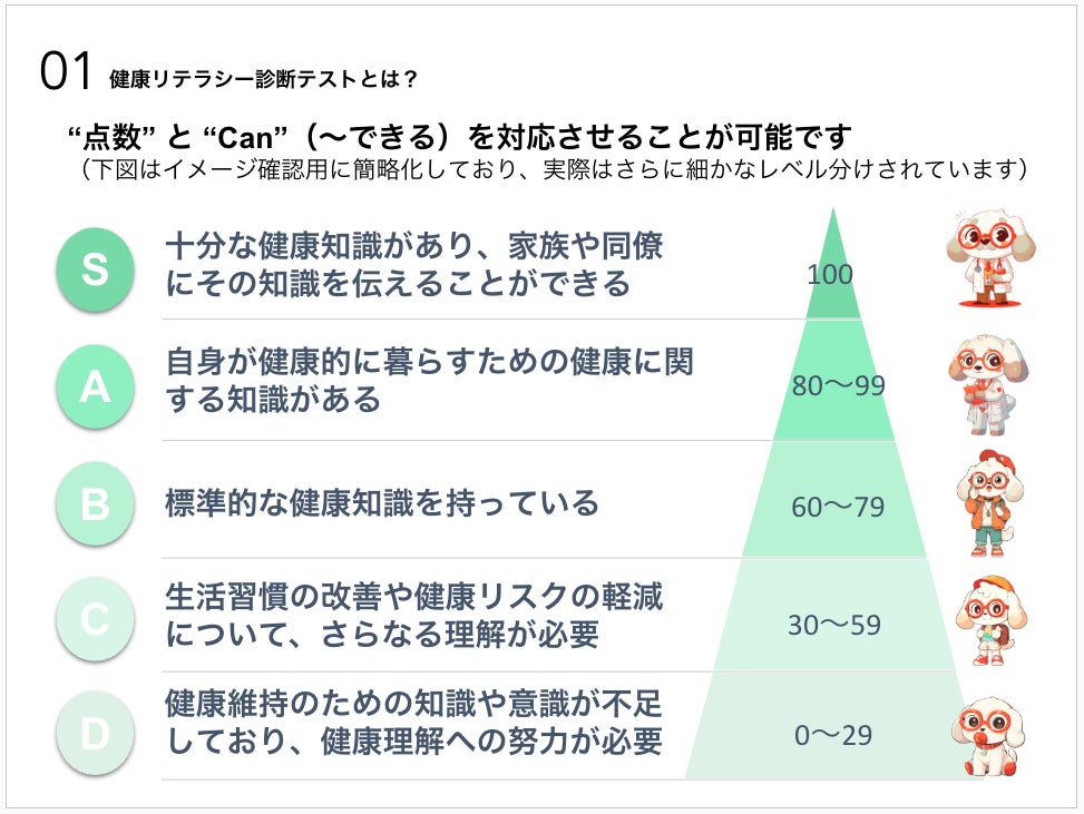 ・組織、従業員の健康リテラシーを定量的に観測することのできる診断サービスです。