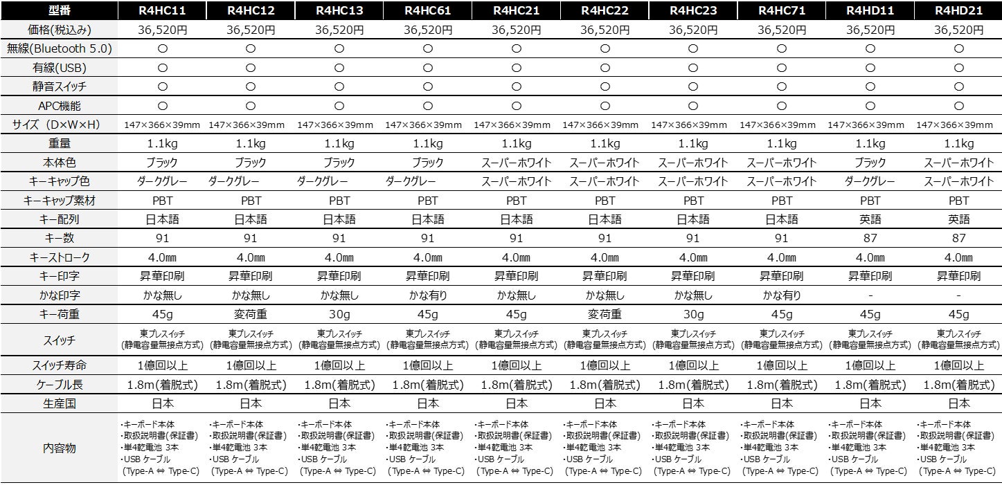 R4 キーボードスペック表①