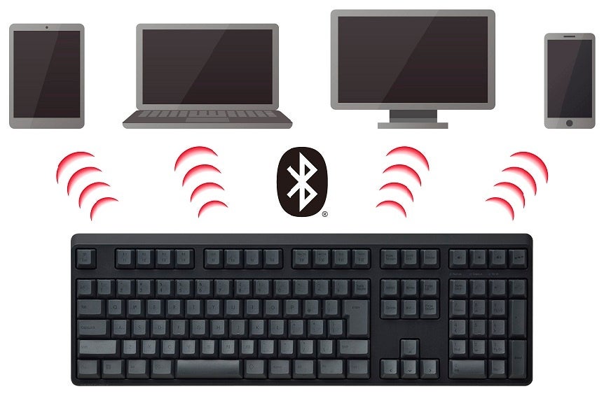 デスクトップパソコンだけなくスマートフォンやタブレットPCなど最大4つの機器とマルチペアリングで接続して随時切り換える事が可能です。また、付属の着脱式USBケーブル(USB Type-C ⇔ USB Type-A)を使用し、USB接続のキーボードとしても使う事ができます。 ※USBケーブルを無線接続の給電用として使用することも可能です。