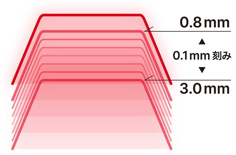 R4キーボードでは、APC機能(アクチュエーションポイントチェンジャー)を搭載しています。専用ソフトウェアで22段階(0.8~3.0mm)に設定が可能です。これにより、高速入力を必要とするタイピングでは0.8mmの浅めにアクチュエーションポイントを設定したり、間違えて押しやすいキーは深めの3.0mmに設定したりすることで誤入力の抑止効果が期待できます。また、設定はキーボードオンボードメモリーに4つまで保存してワンタッチで切り換えられます。