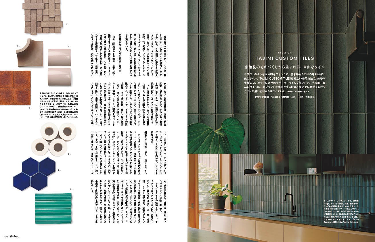 『I'm home.』は、住まいのインテリアデザインを中心に暮らしにかかわるテーマを幅広く取り上げ、「住まいにおける心地良さとは何か」を提案する、“上質”で“本物”志向のライフスタイルマガジンです。プランニングから素材の選び方、家具のコーディネートまで、ハイエンドな住まいづくりを目指す一般読者だけでなく、建築家やインテリアデザイナーといったプロにも役立つ情報を掲載しています。2000年創刊。1,3,5,7,9,11月の16日発売。