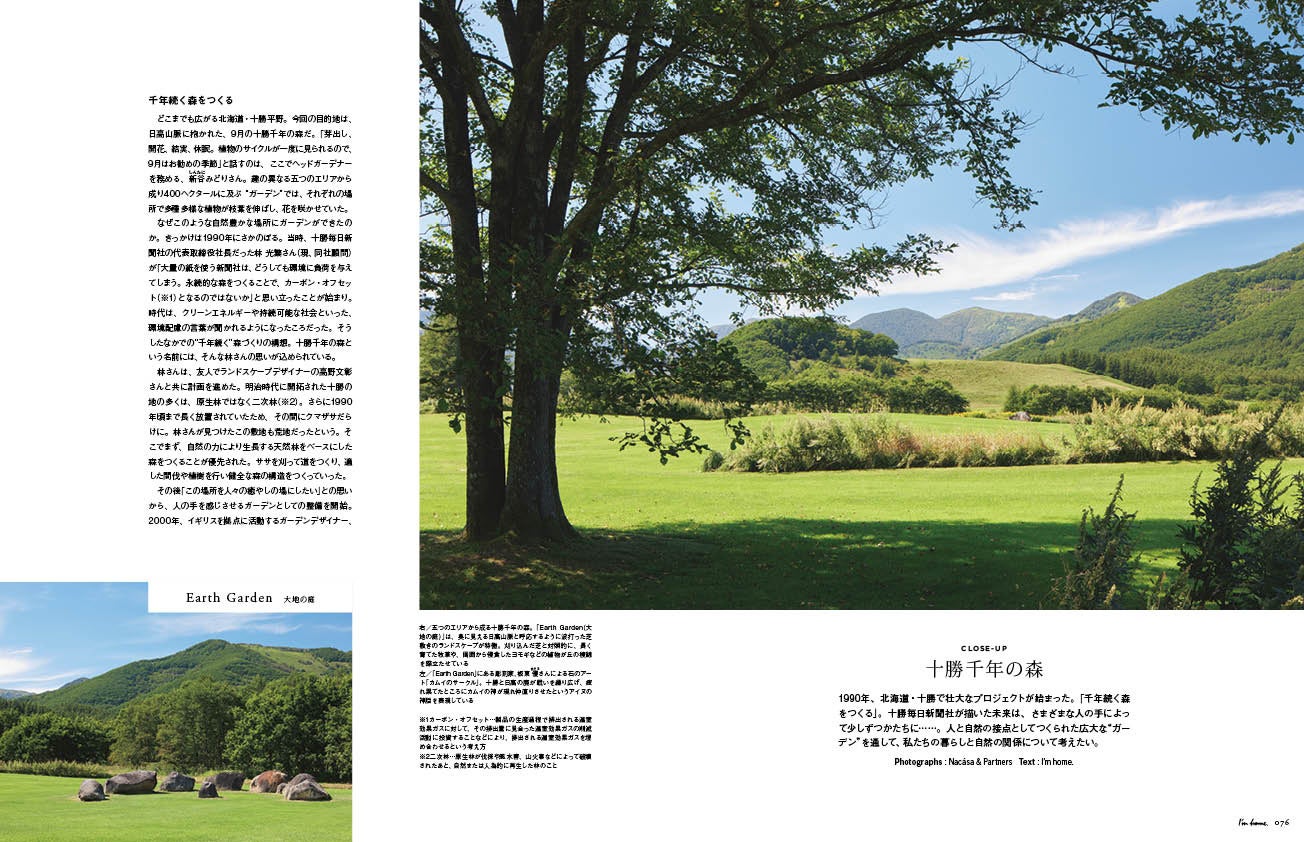 1990年、北海道・十勝で始まった壮大なプロジェクト、「千年続く森をつくる」。十勝毎日新聞社が描いた未来は、さまざまな人の手によって少しずつかたちに……。人と自然の接点としてつくられた広大な“ガーデン”を通して、私たちの暮らしと自然の関係について考えます。