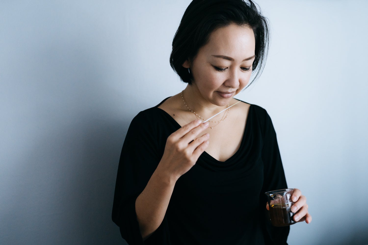 ブランドコンセプトに合わせ、グレイッシュなニュアンスでユニセックスな香りを天然香料のみで表現しました。