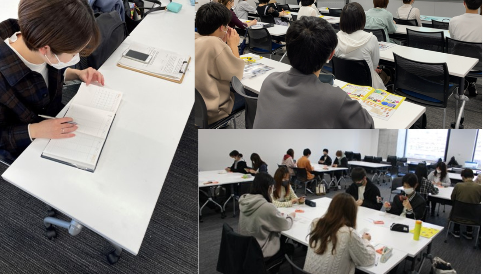 本講座では愛知大学生が考案したワンセメ手帳を使用し、スケジュール管理の基礎を学ぶとともに、確実に行動へ移せるツールとして使いこなす方法を伝えます。また、本講座を通しスマホ世代の大学生に「計画倒れにならない習慣作り・行動管理ができる」能力を身につけてもらいます。