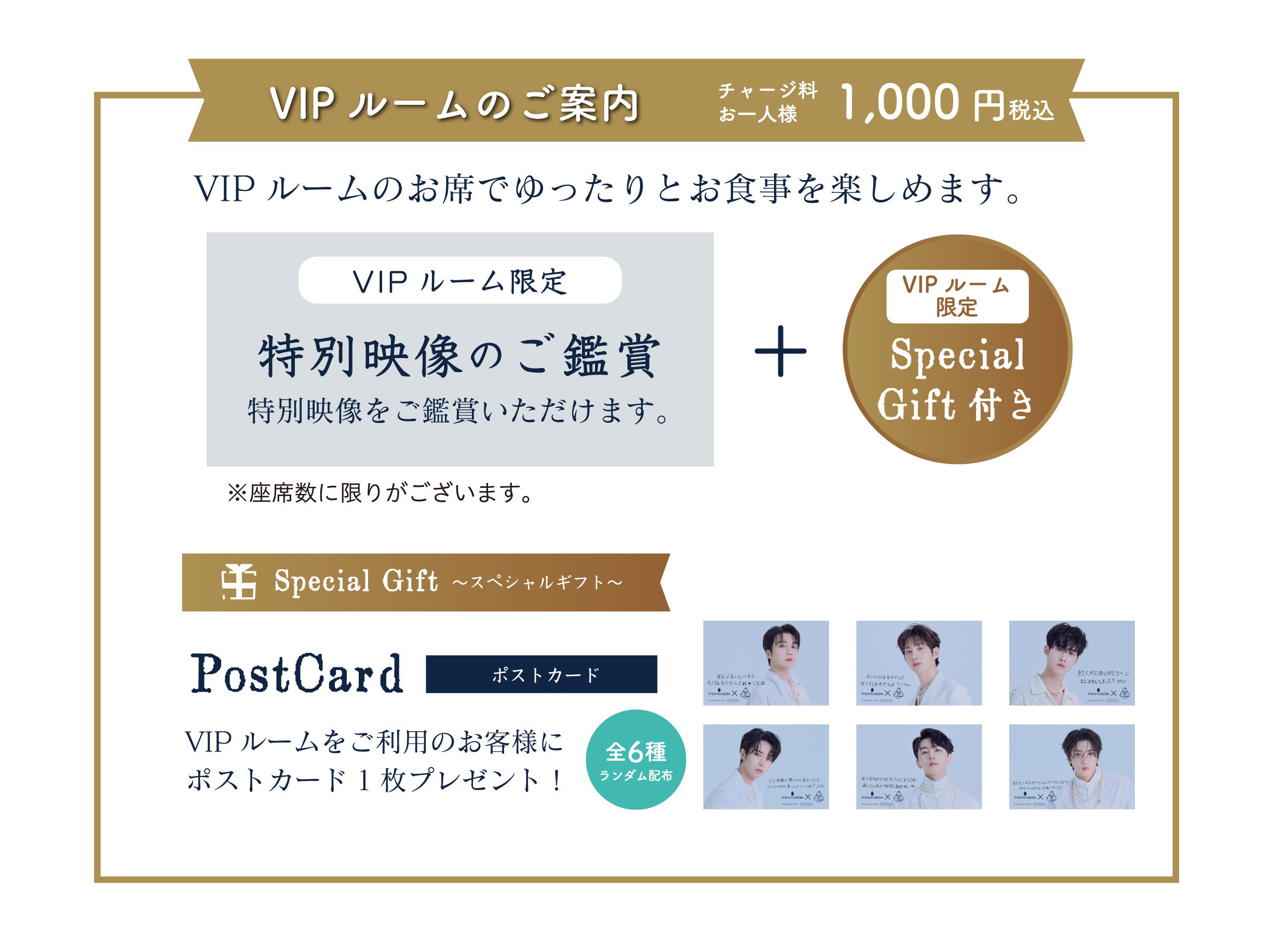 VIPルームをご利用のお客様にポストカード(全6種)1枚をプレゼント致します。