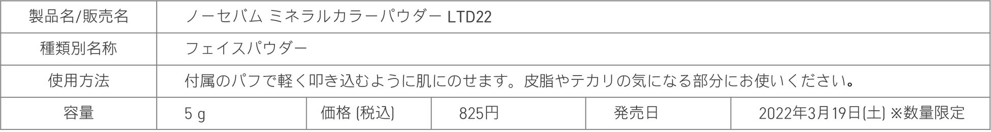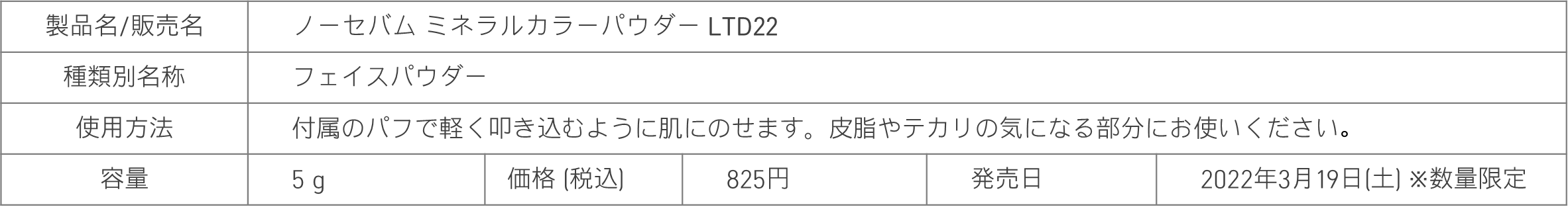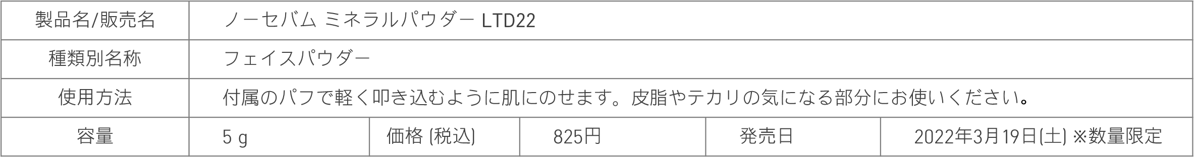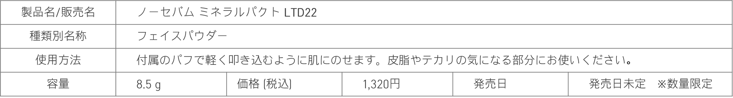 ※『ノーセバム ミネラルパクト LTD22』のみ、入庫遅延により発売日程が未定となっております。
