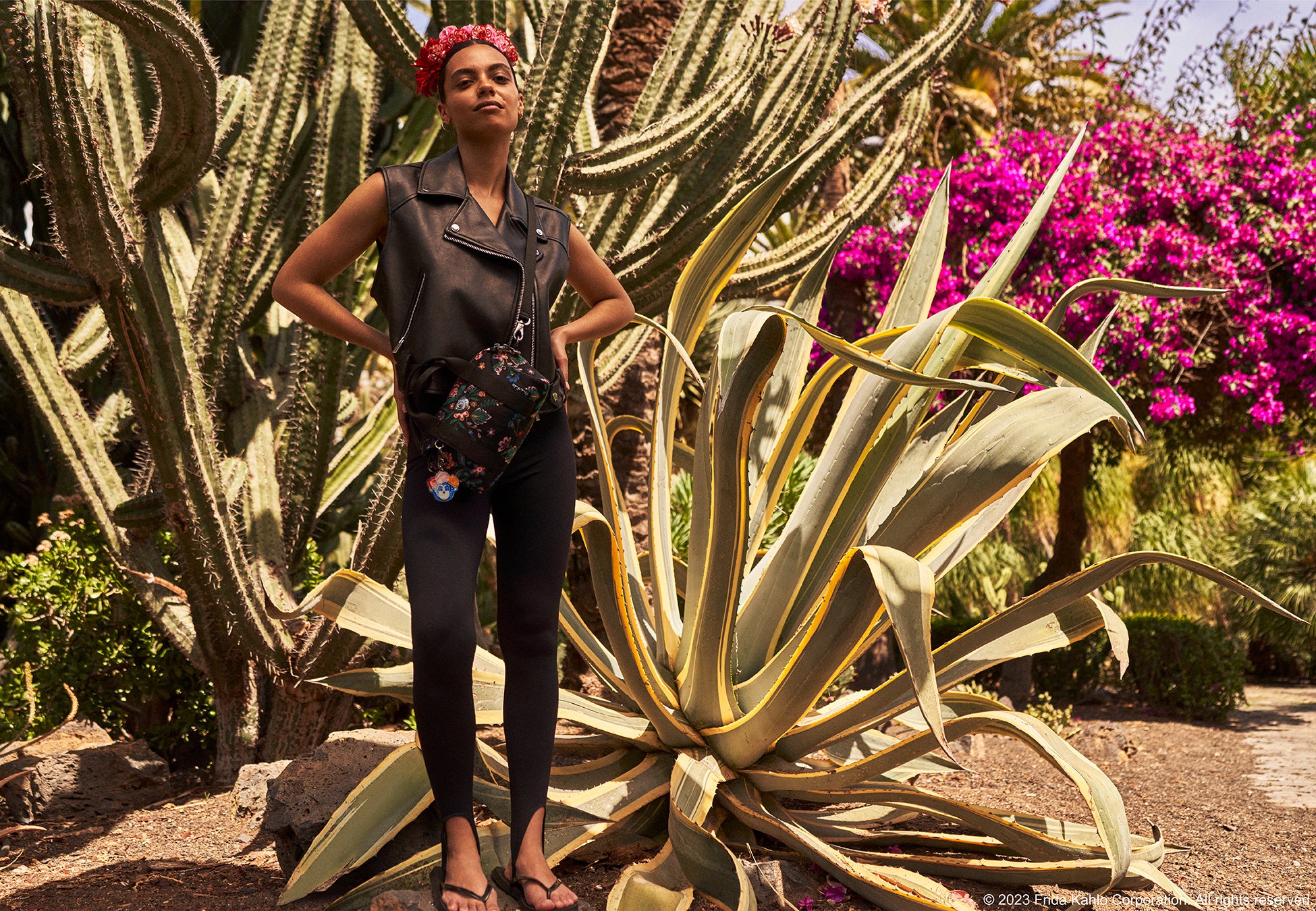 メキシコ革命時代に育ったフリーダの芸術は、その影響を受けてヘリテージや自然、感情、アイデンティティといった要素の複雑な組み合わせを反映し、ジェンダーの役割を追求しながら常に現状を打破しようと試みていました。キプリングは「フリーダ・カーロ」にインスパイアされたこのコレクションを、誇りを持って皆さまにお届けいたします。