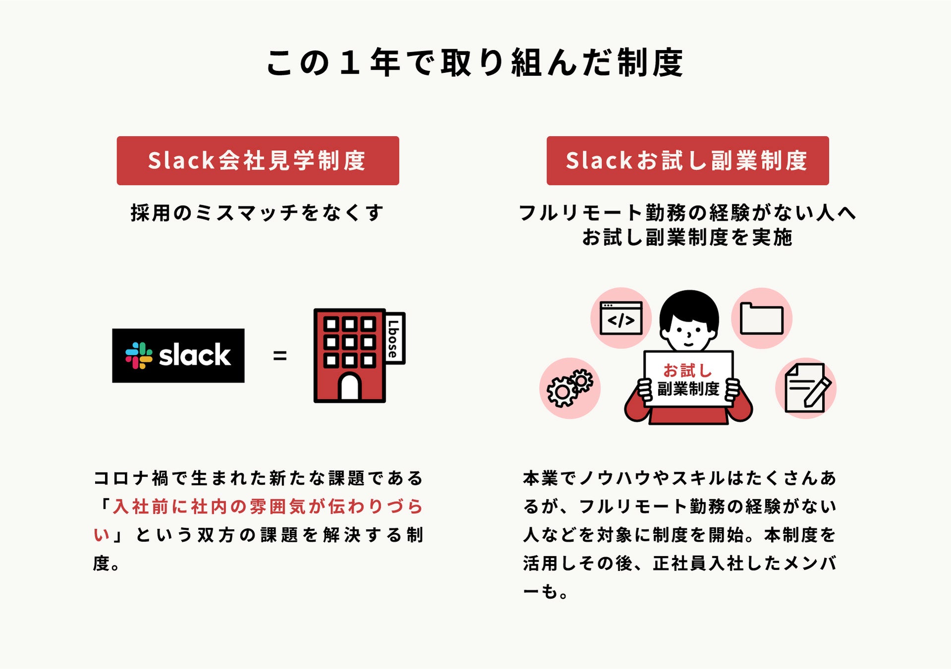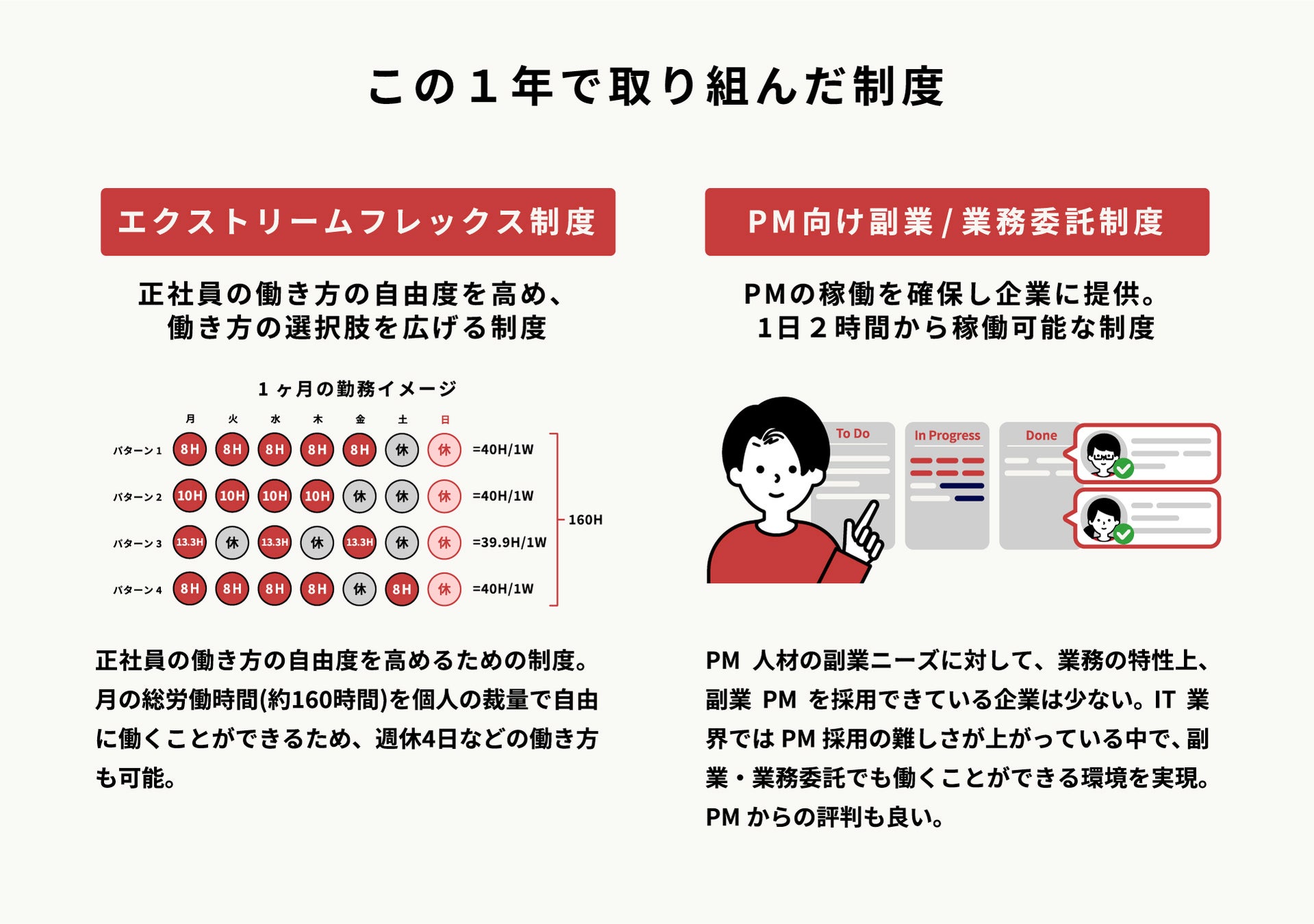 ・柔軟な働き方の整備、メンバーのスキルやリソースを最大限活用するための案件獲得に向け、2022年7月に資金調達を実施。資金調達の前後では4つの柔軟な働き方に関する制度を発表しました。