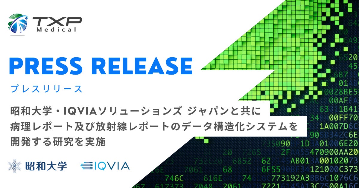 TXP Medical、昭和大学・IQVIAソリューションズ ジャパンと共に病理レポート及び放射線レポートのデータ構造化システムを開発する研究を実施