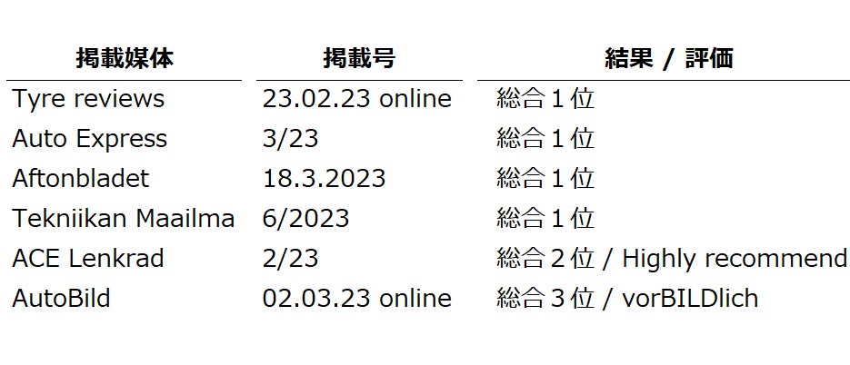 *1)TTI Awards for Innovation and Excellenceは、タイヤ業界において最も重要な賞の1つであり、世界中のタイヤ技術の最新開発・進歩を表彰するものです。この賞は、20名以上のジャーナリストとタイヤ業界の第一人者からなる国際審査員によって審査され、2023年3月21日から23日までドイツのハノーバーで開催された「Tire Technology Expo 2023」で発表されました。