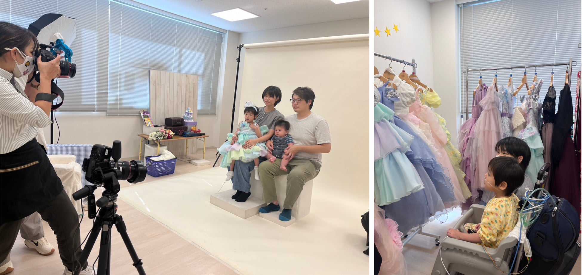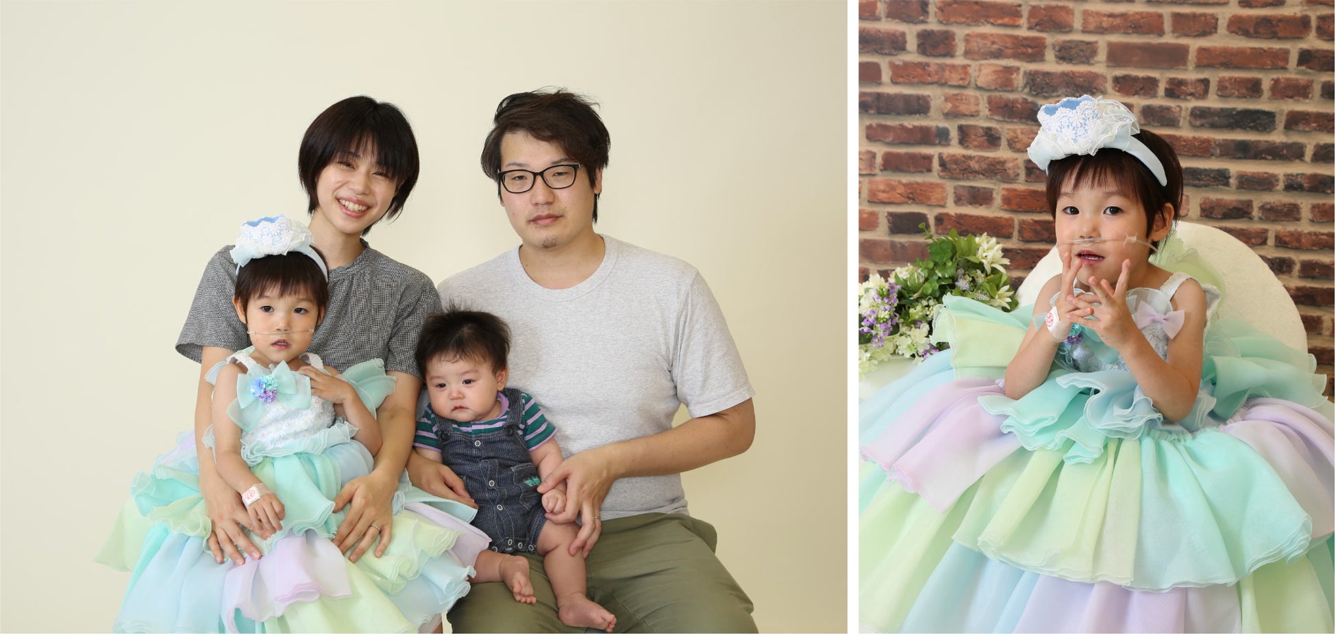 入院生活の中で、病院内でこのような経験ができてよかったです。好きな色や好みも出てくるので、衣装もこどもが自分で選べて気に入ったものが選べたので喜んでいました。以前撮影したときは、体調が悪くて機嫌が悪く泣いてばかりでしたが、今回は病院内ということもあり、周りのサポート体制も整っていたので、ご機嫌で撮影ができて本当によかったです。(髙木さん)