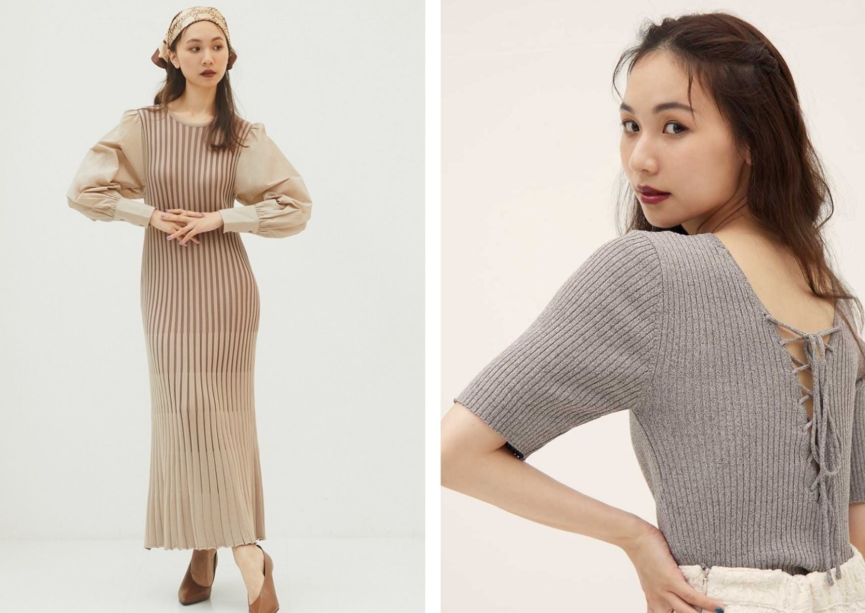 ニットのバックスタイルをレースアップでさりげない肌見せを叶えるトップス。