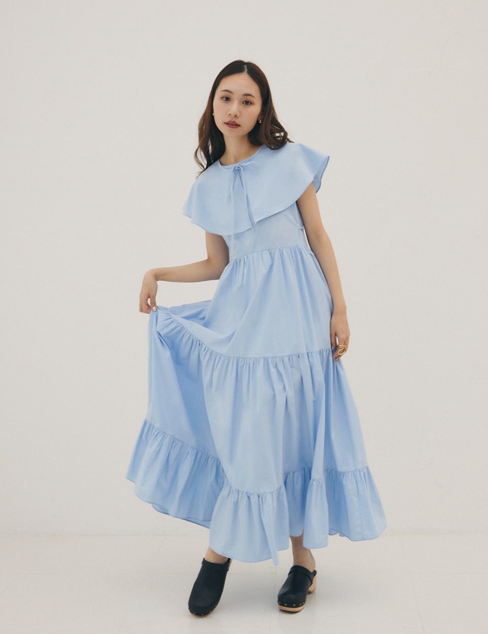 フォーマルにも演出できるディテールで、遊び心を効かせたボリュームのあるアシンメトリーロングスカート。