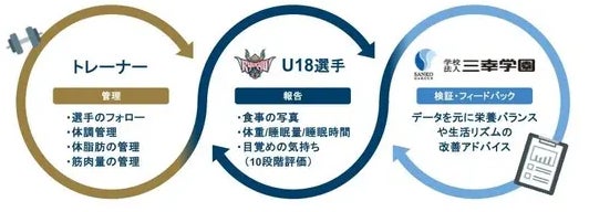 (※図参照:キングスU18選手・トレーナー・三幸学園が連携してコンディショニングを最適化)