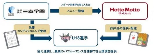 ・メニュー監修:学校法人三幸学園がスポーツ栄養学に基づいて、選手に最適なメニューを監修。