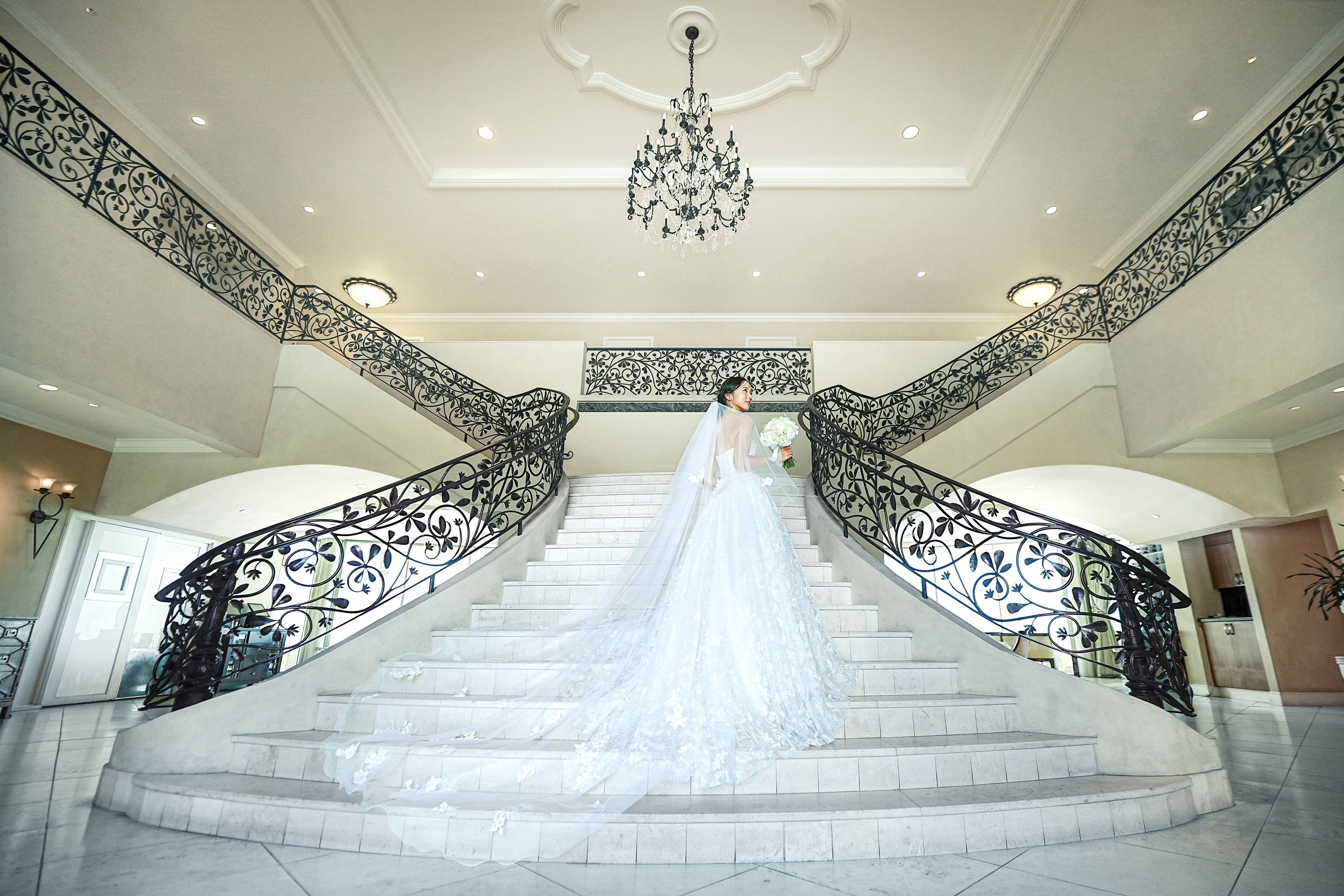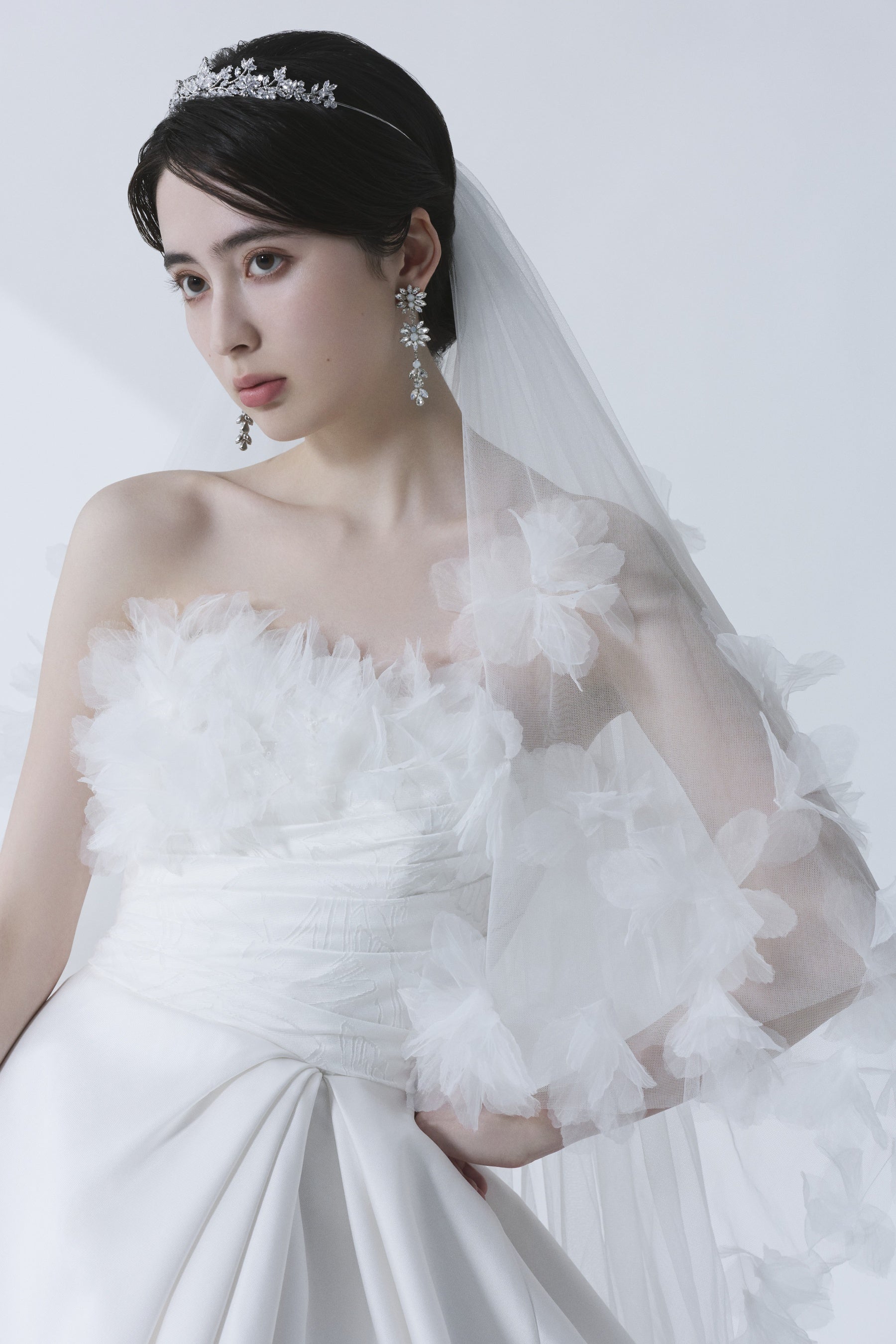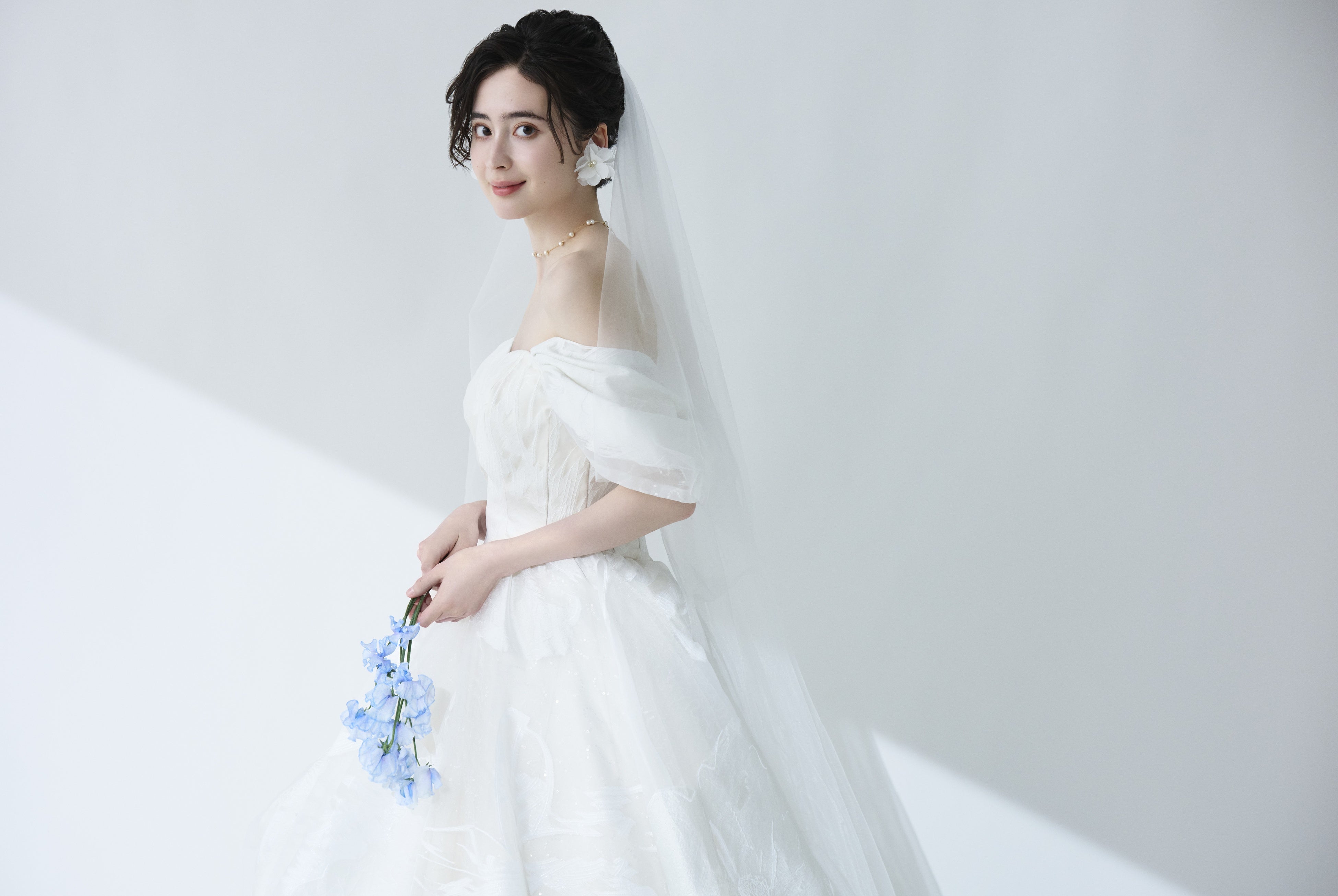 このドレスのために制作された専用ベールと合わせることで、