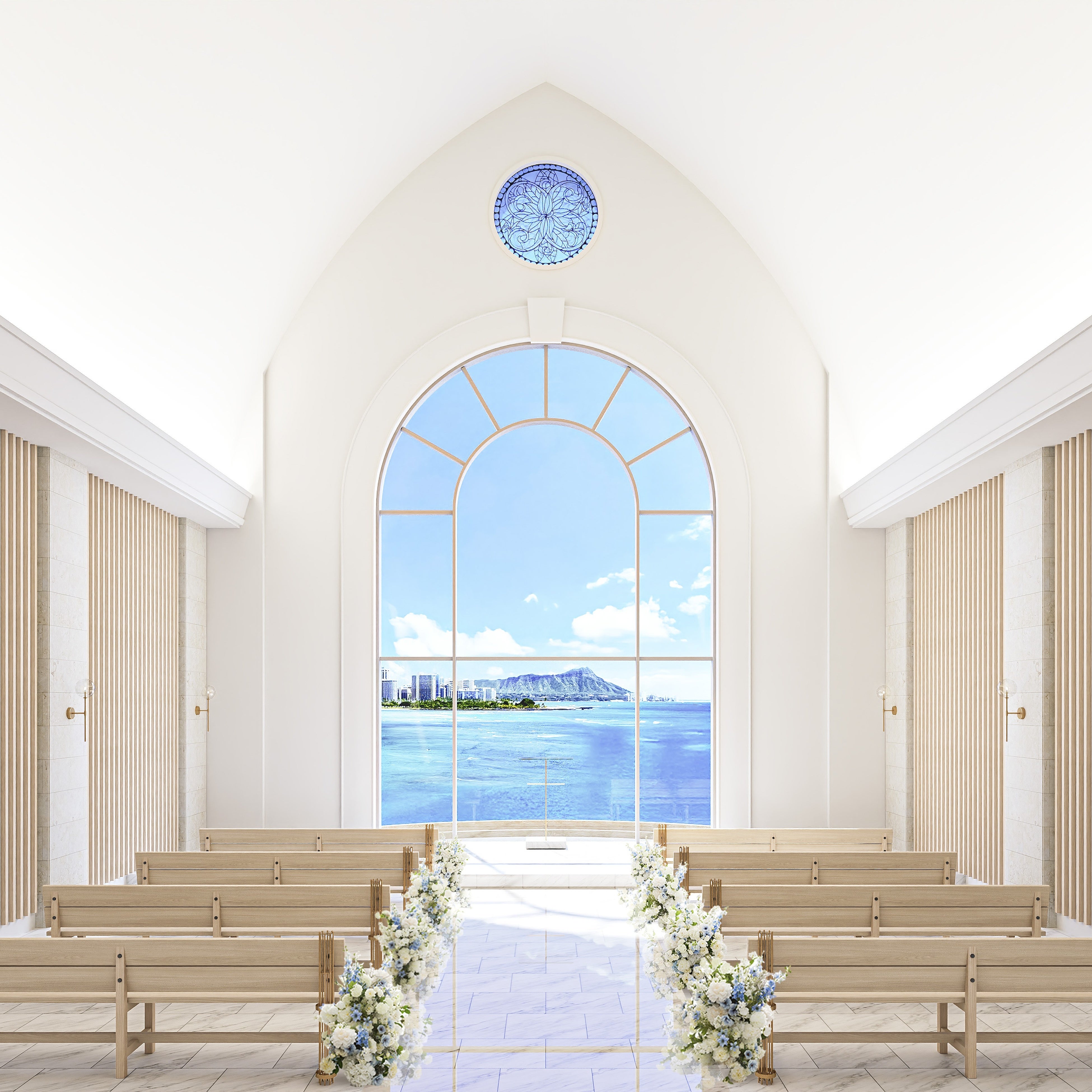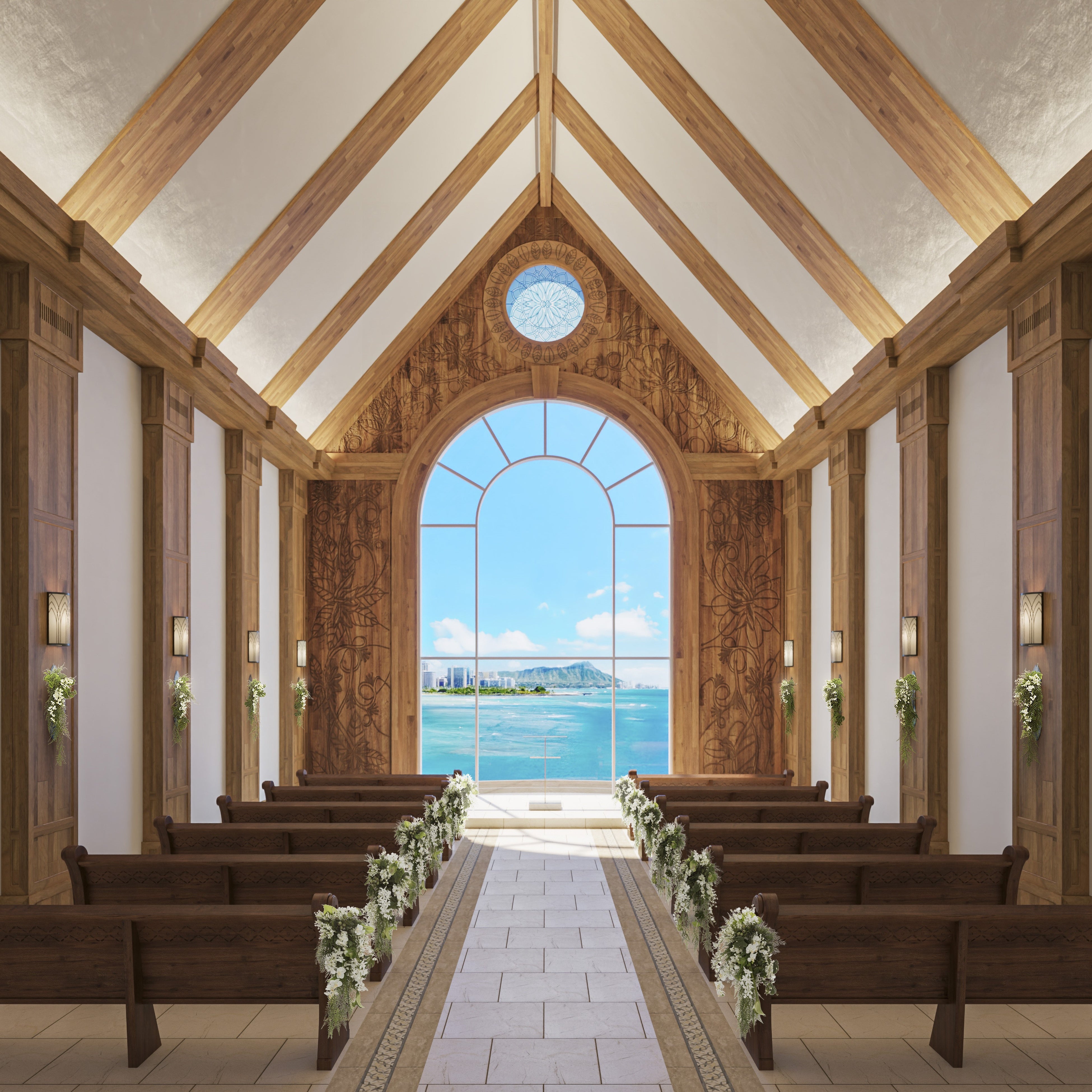 ハワイの文化やチャペルの空間美に寄り添う、気品あるエレガントなデザイン。